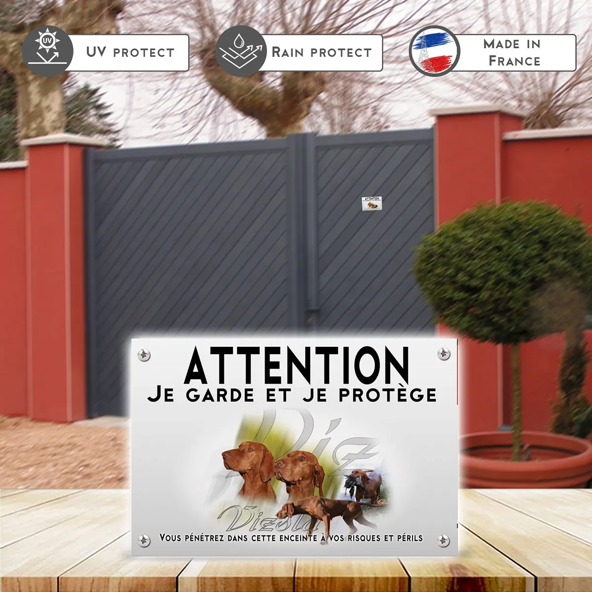 Pour en savoir plus sur notre gamme de plaque Attention au Chien Vizsla.