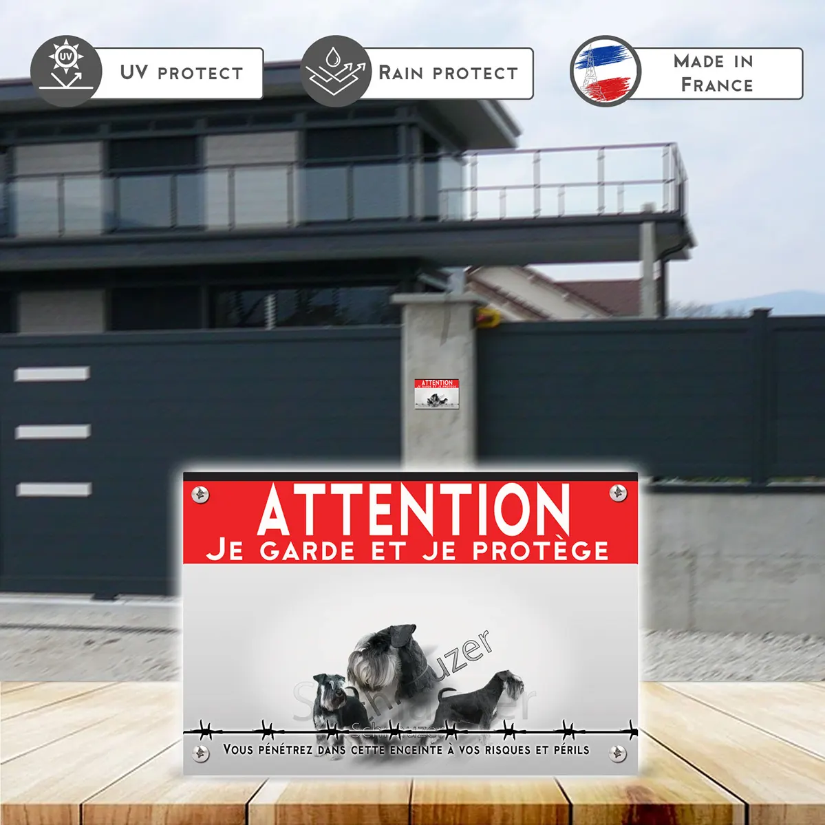 Panneau attention au chien Schnauzer Argent – Métal – Haute qualité