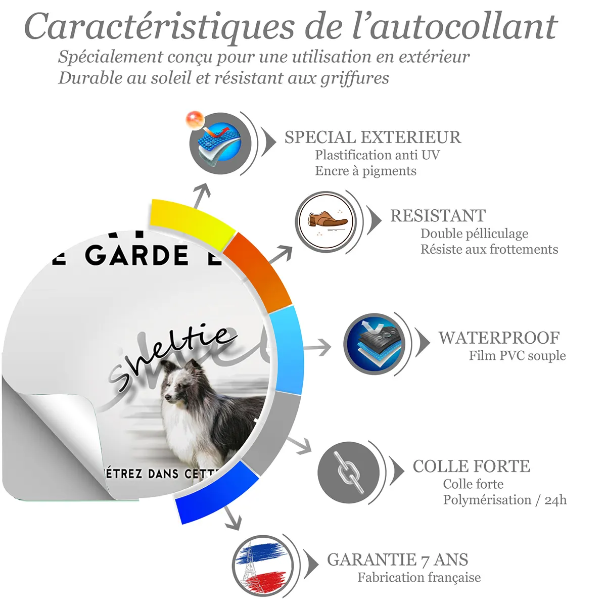 - Illustration réaliste du Sheltie De Travail : une image fidèle qui authentifie la présence de votre compagnon et renforce l’effet de prévention.