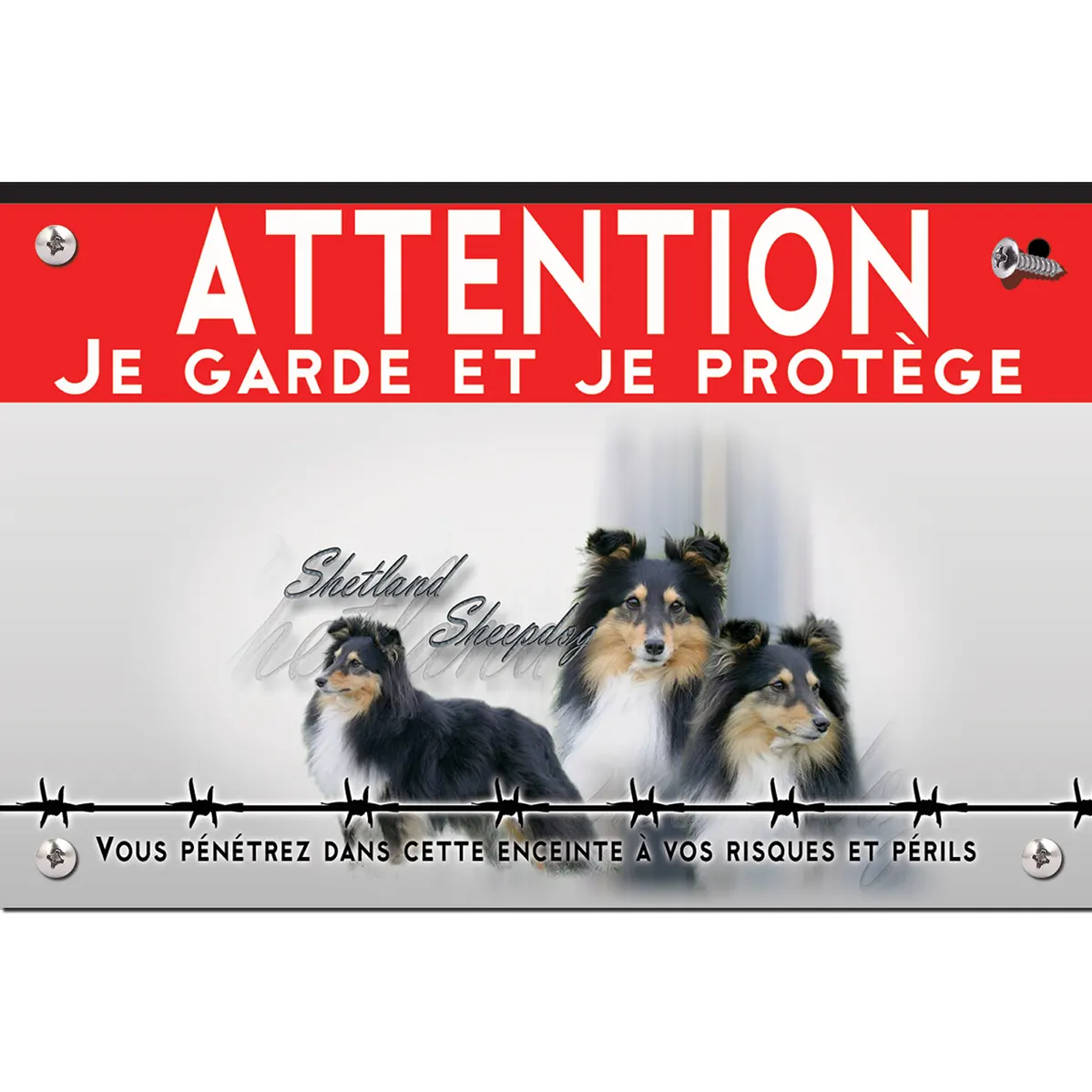 Panneau attention au chien Shelty – Métal – Haute qualité