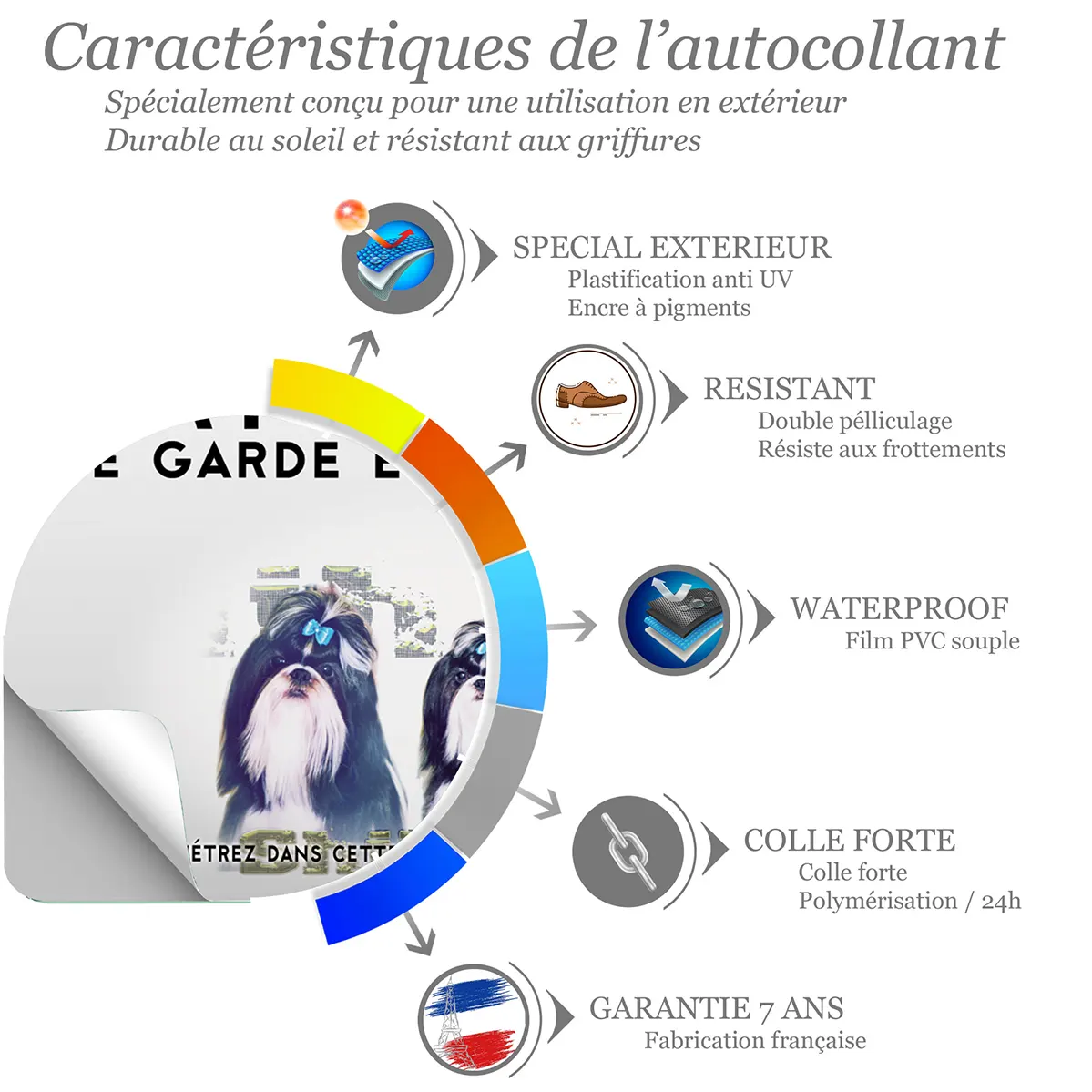 Affichez avec force et élégance la présence de votre Shih Tzu. Ce panneau Attention au Chien Shih Tzu de la Gamme Impact, disponible en métal Dibond et autocollant résistant aux intempéries et imprimé en UV, offre un contraste puissant pour une lisibilité immédiate et une dissuasion polie à l’entrée.