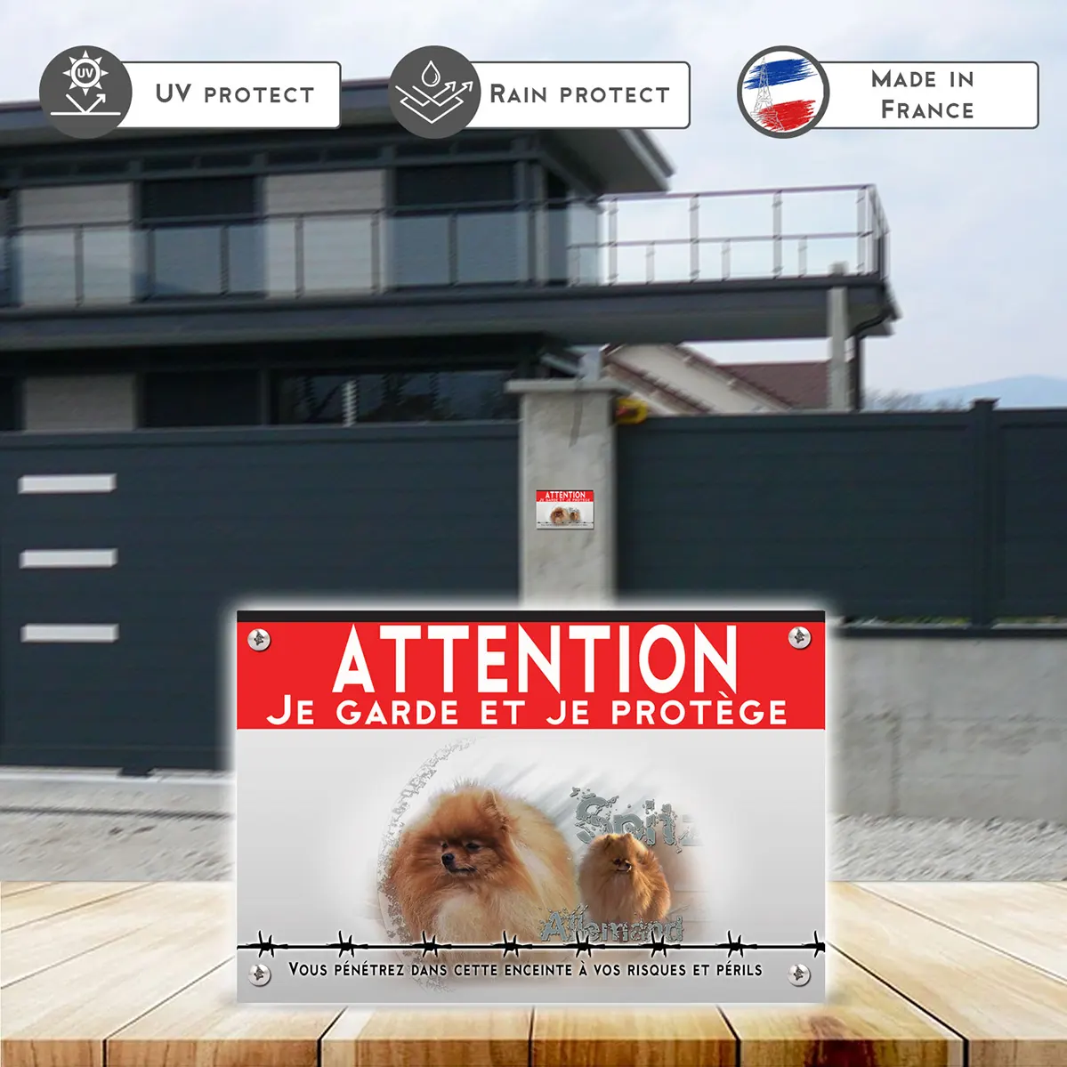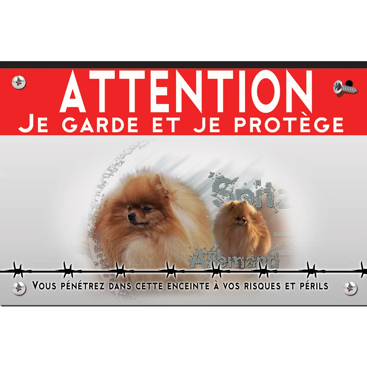 Pour en savoir plus sur notre gamme de plaque Attention au Chien Spitz Allemand.