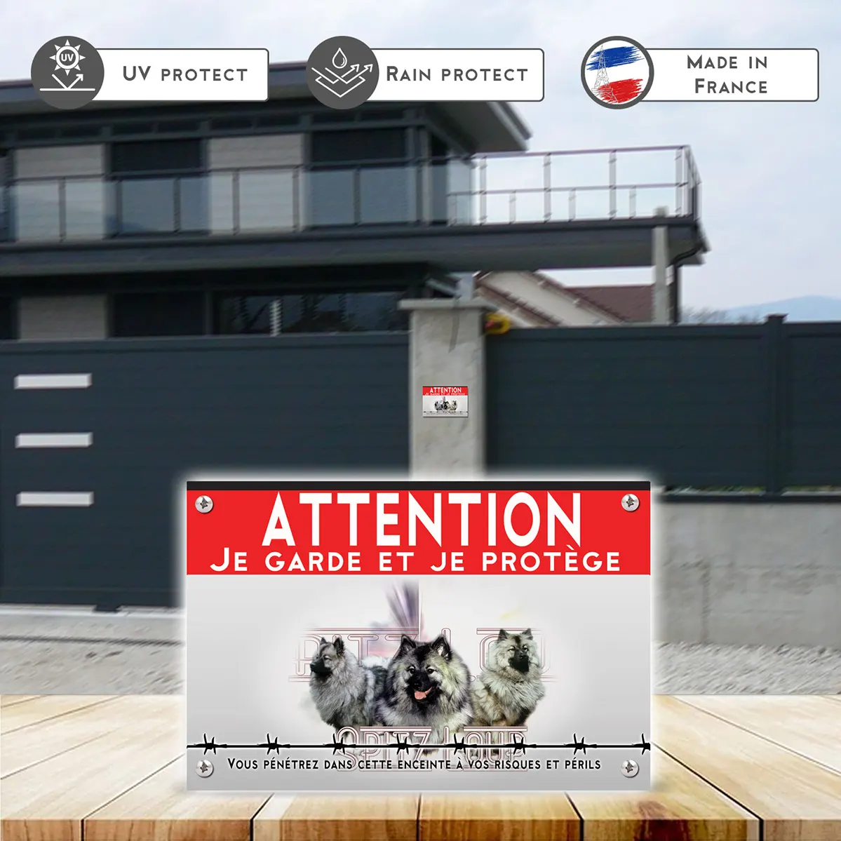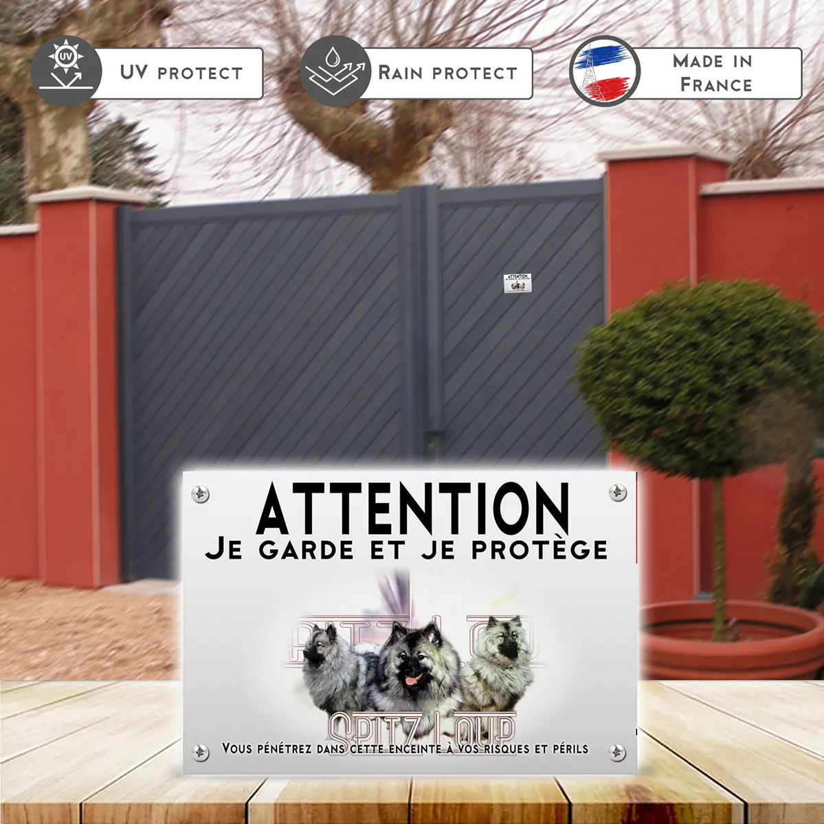 Pour en savoir plus sur notre gamme de plaque Attention au Chien Spitz-Loup.
