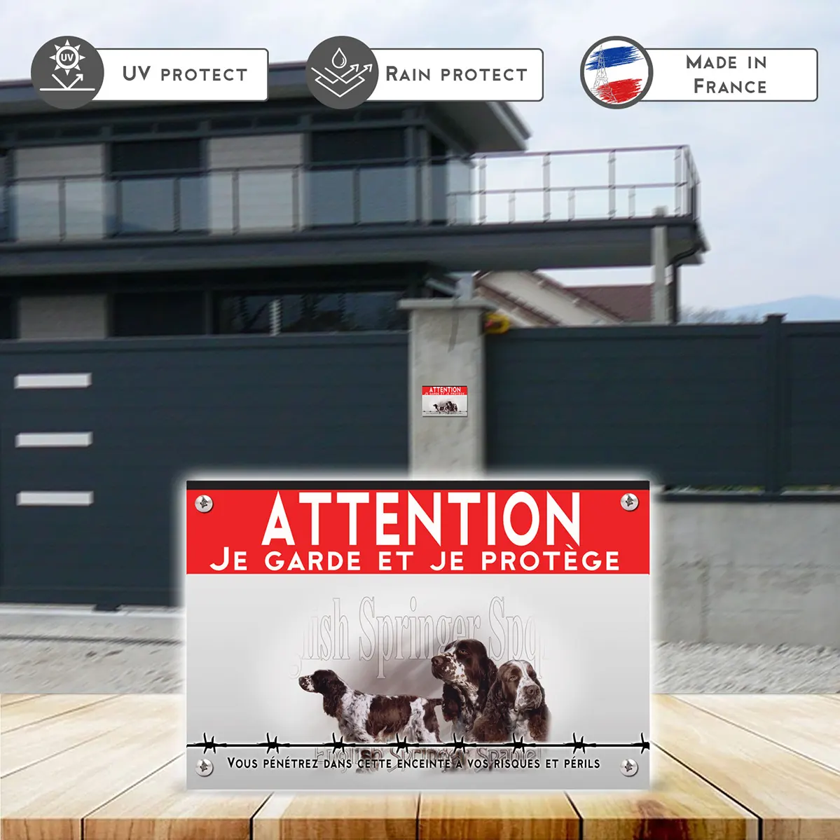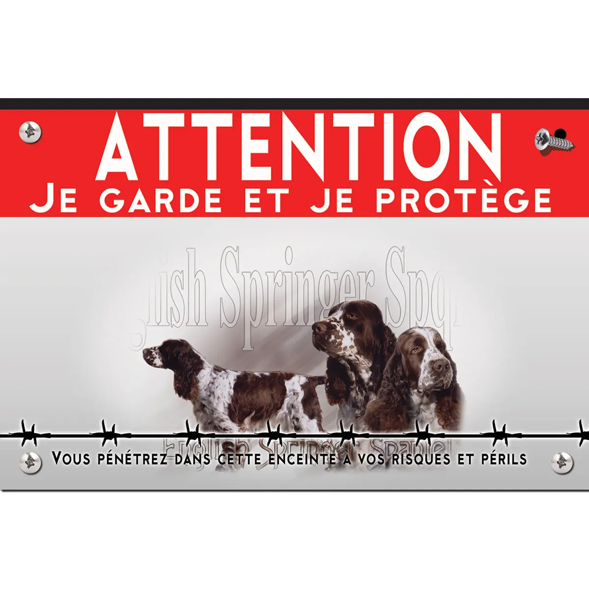 Panneau attention au chien Springer Spaniel – Métal – Haute qualité
