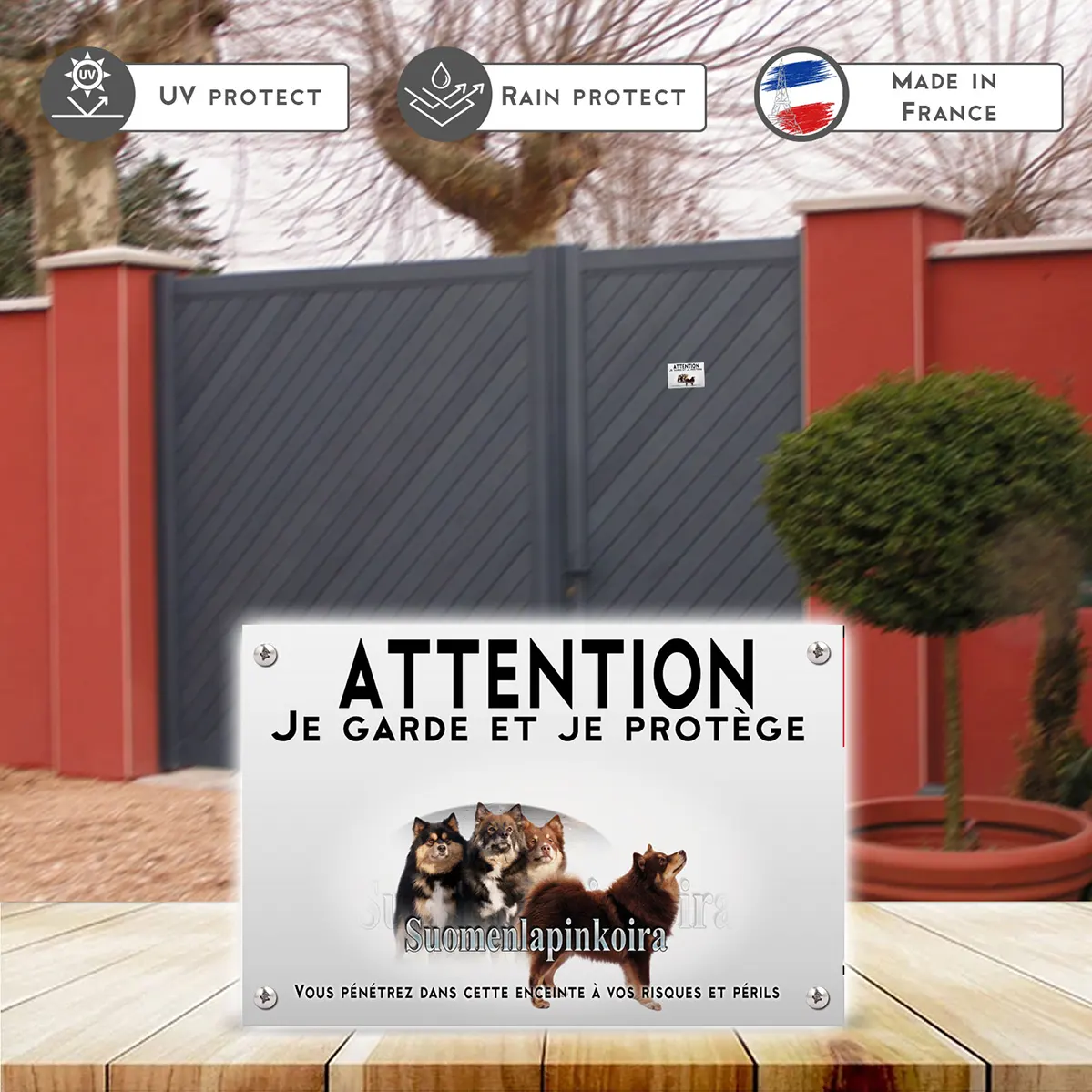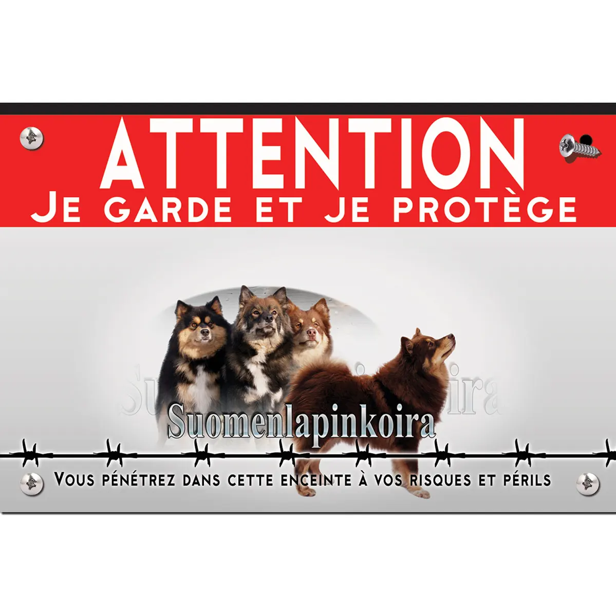 Pour en savoir plus sur notre gamme de plaque Attention au Chien Suomenlapinkoira.