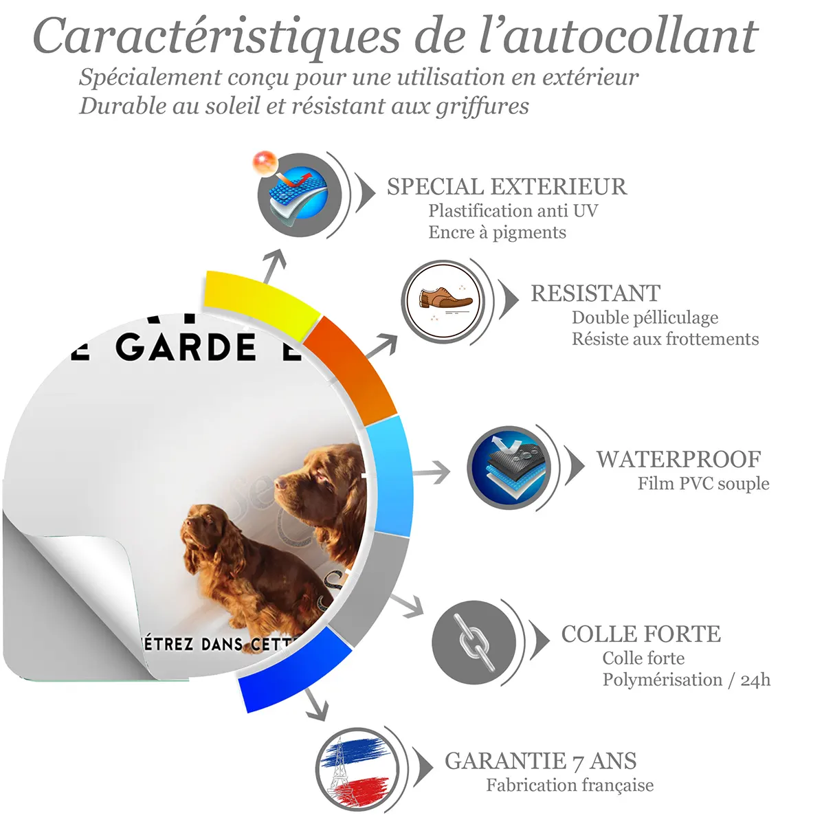- Illustration réaliste du Springer Spaniel : une image fidèle qui authentifie la présence de votre compagnon et renforce l’effet de prévention.