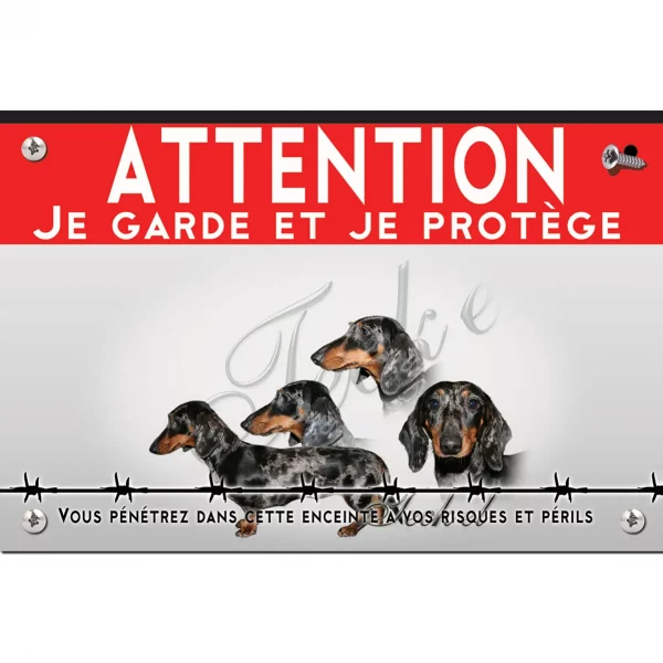 Panneau attention au chien Teckel Arlequin – Métal – Haute qualité