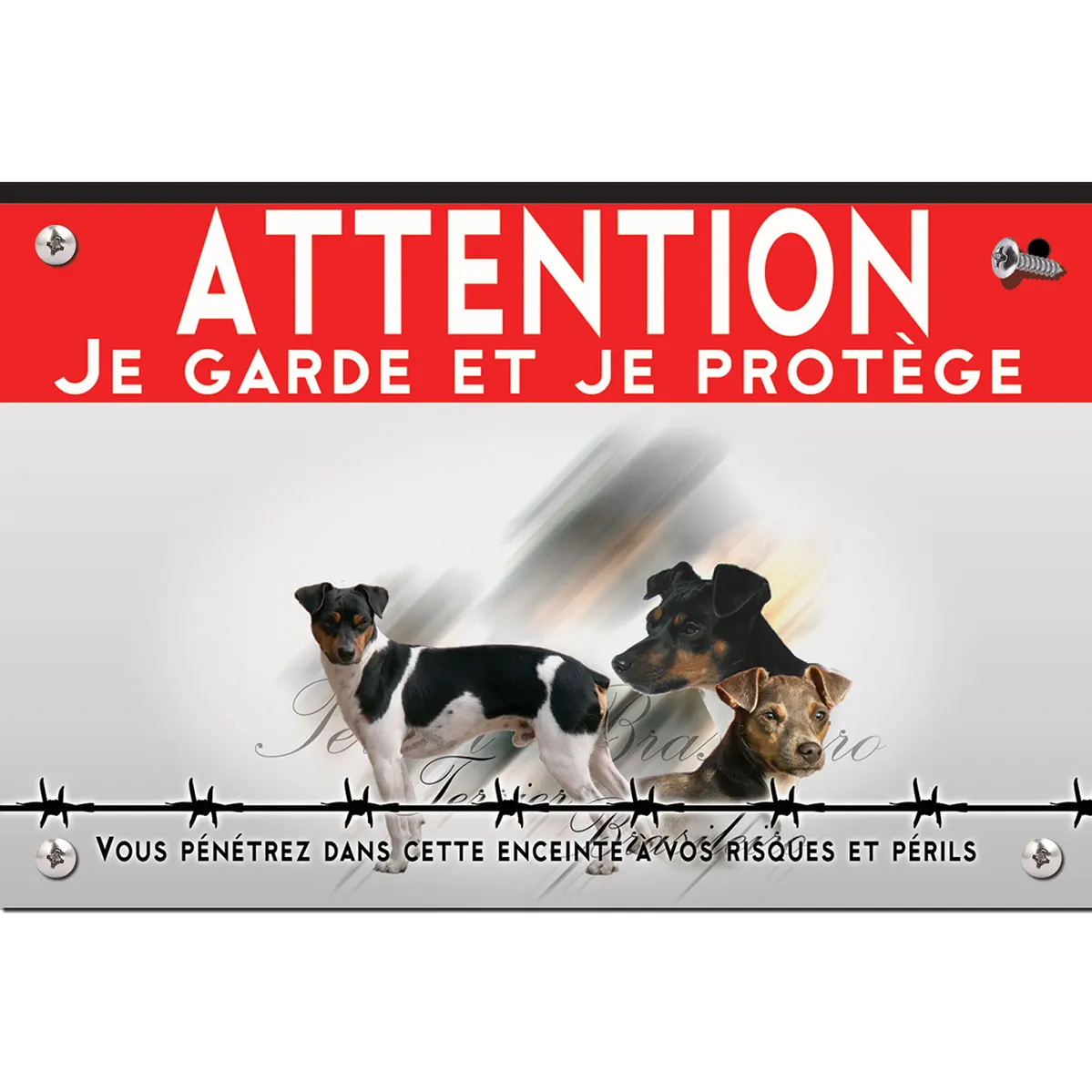Pour en savoir plus sur notre gamme de plaque Attention au Chien Terrier Bresilien.