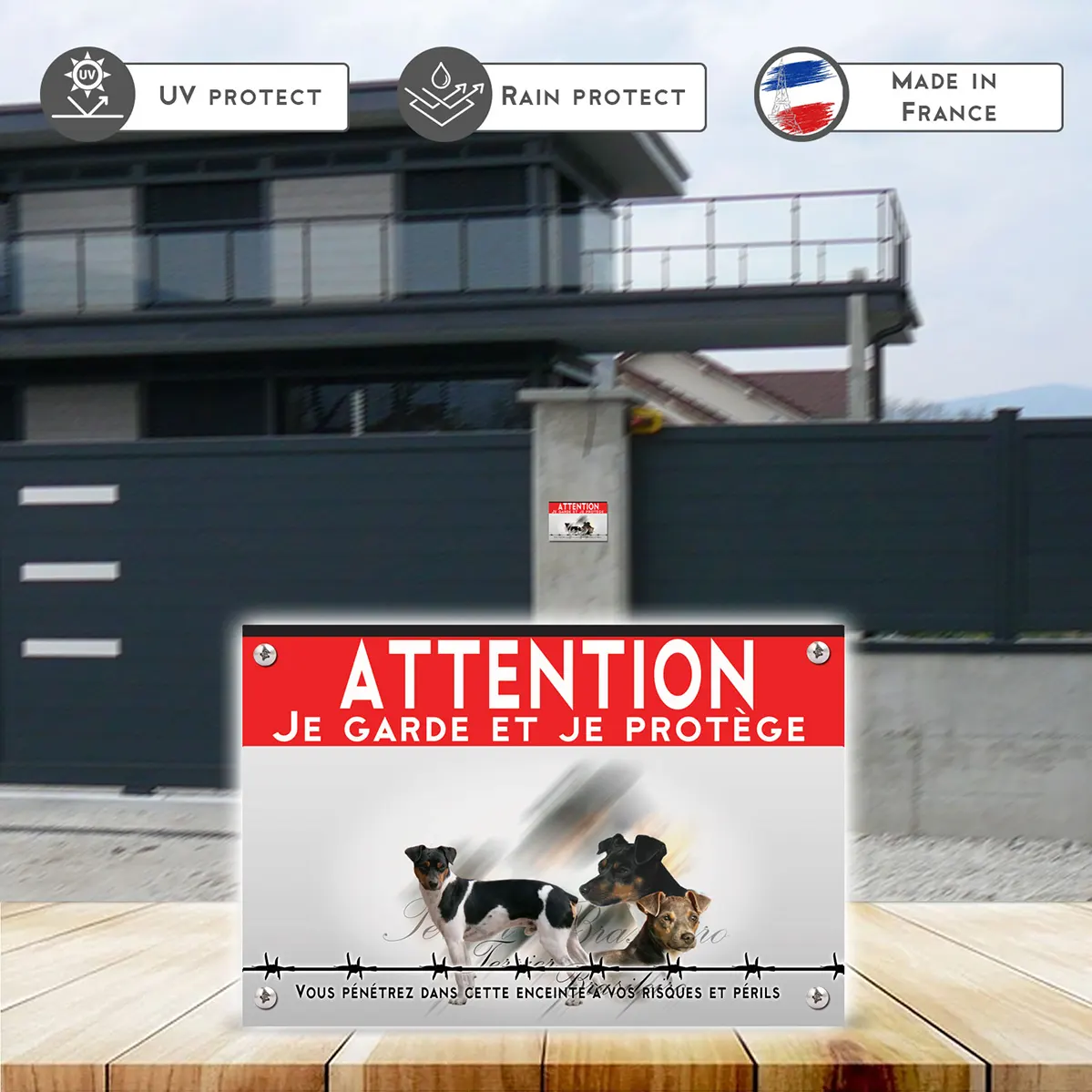 Le terrier brésilien est une race à la fois attachante et vigilante. Originaire du Brésil, ce chien allie un tempérament affectueux à une capacité naturelle de protection. Très attaché à sa famille, il fait preuve d’un instinct de garde exceptionnel, tout en restant un doux compagnon de vie. Sa vigilance ne doit jamais être confondue avec l’agressivité ; au contraire, il saura protéger vos biens et propriétés tout en restant un ami fidèle pour ceux qui lui sont chers. Avec une signalisation adaptée, telle que notre panneau, vous valorisez son rôle de dissuasion douce et respectueuse.