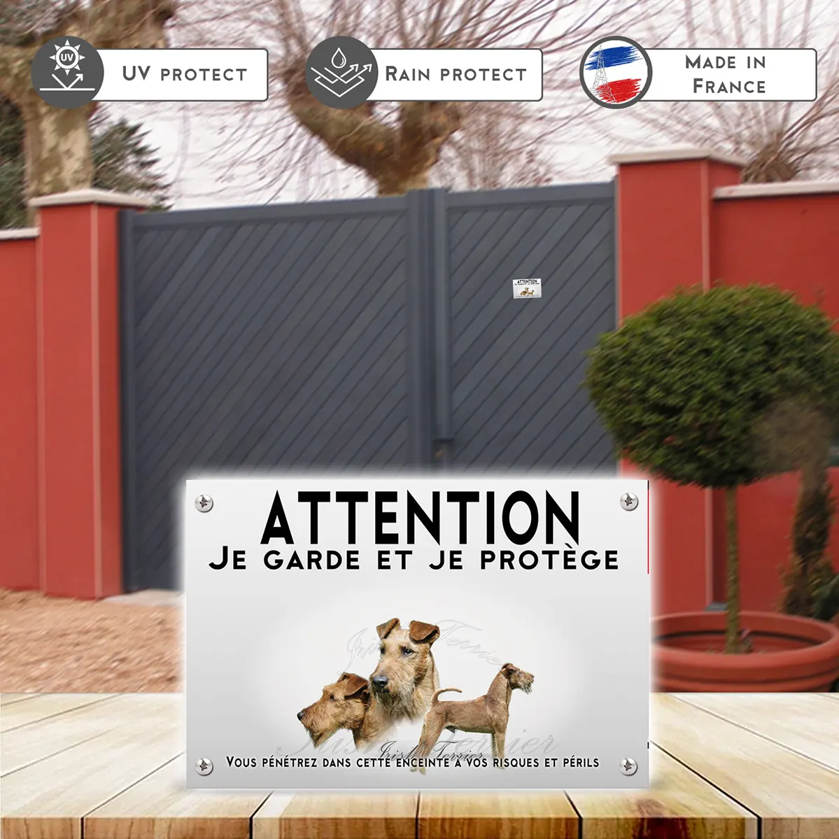 Pour en savoir plus sur notre gamme de plaque Attention au Chien Terrier Irlandais.