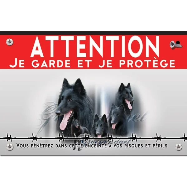 Pour en savoir plus sur notre gamme de plaque Attention au Chien Berger Belge Groenendael.