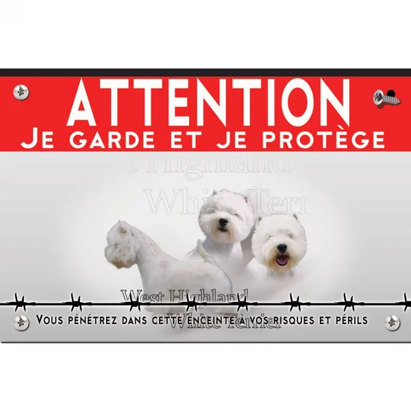 Pour en savoir plus sur notre gamme de plaque Attention au Chien West Highland White Terrier.