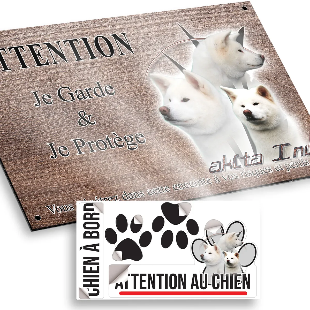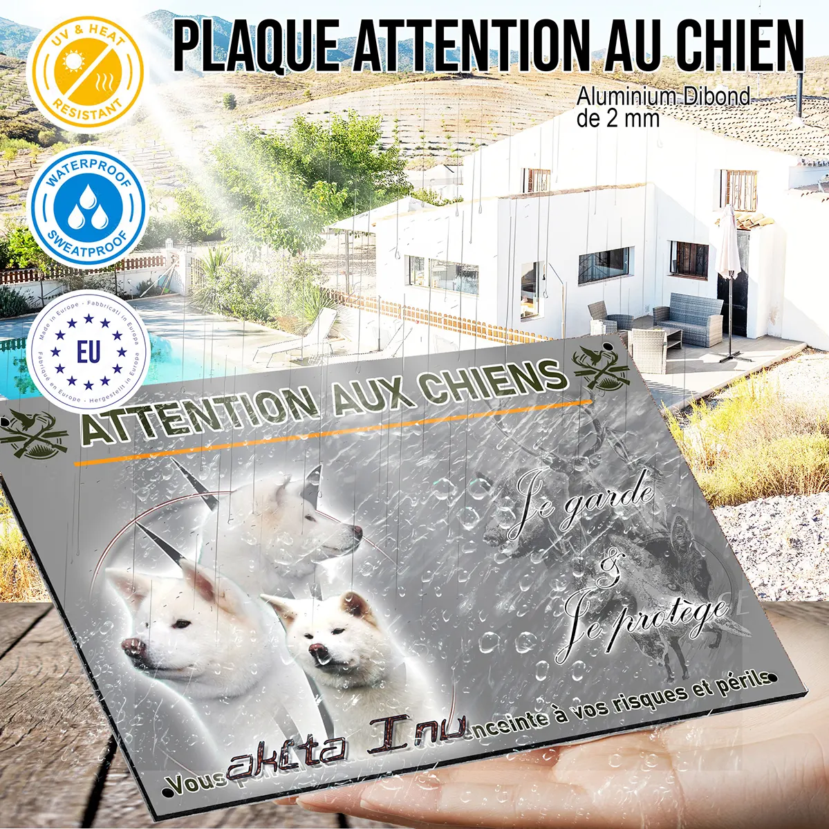 - Plaque Attention au chien akita inu blanc : signalétique claire et dissuasive