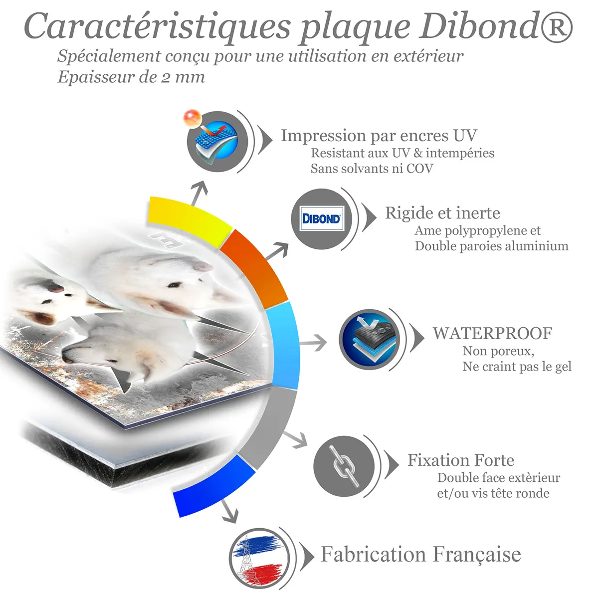 Oui, la plaque est fabriquée en aluminium Dibond de 2 mm et imprimée en UV. Elle ne craint ni la pluie, ni le soleil, ni le gel. Elle peut rester fixée dehors toute l’année sans perdre ses couleurs.