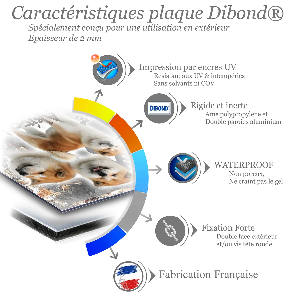 Oui, la plaque est fabriquée en aluminium Dibond de 2 mm et imprimée en UV. Elle ne craint ni la pluie, ni le soleil, ni le gel. Elle peut rester fixée dehors toute l’année sans perdre ses couleurs.