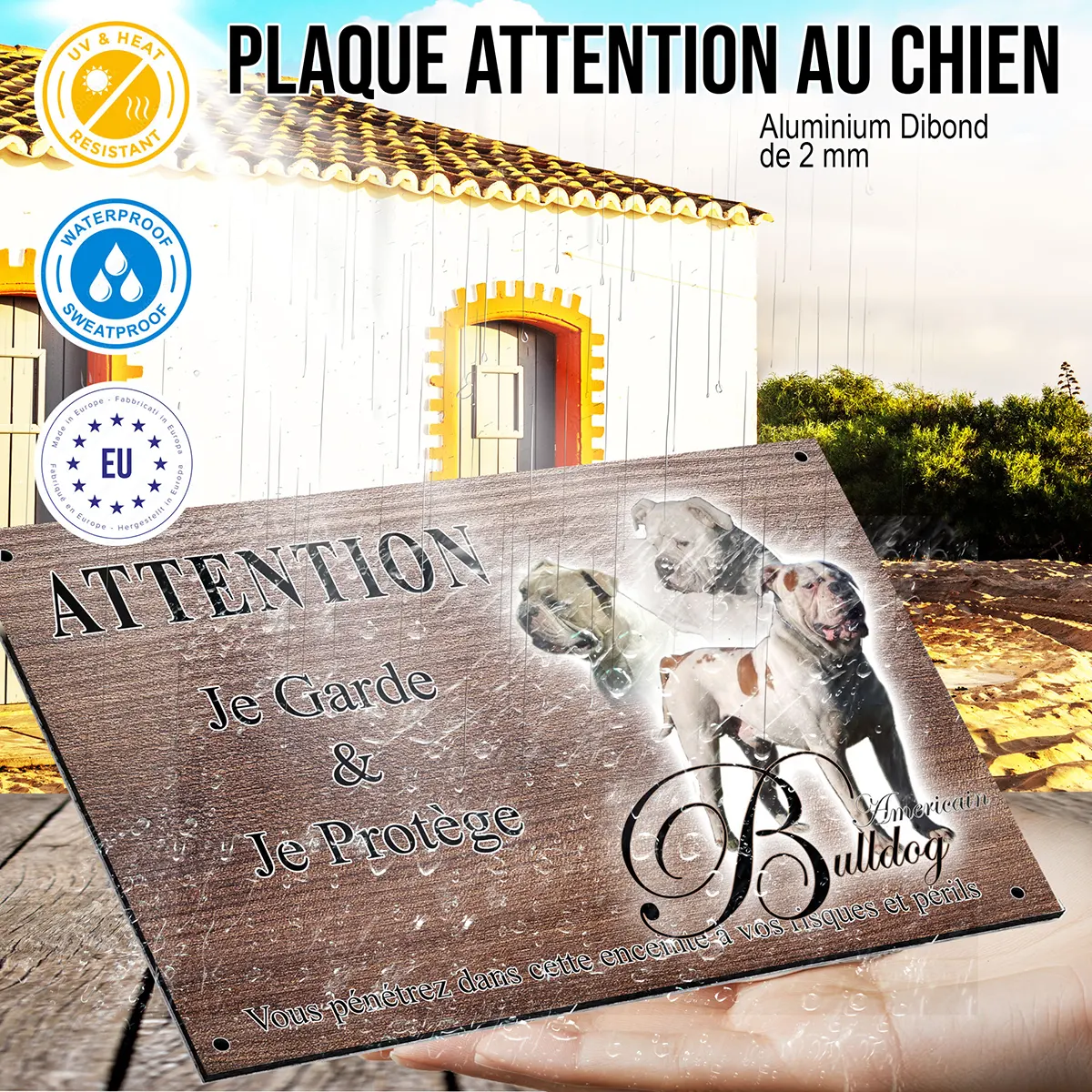 - Plaque Attention au chien american bulldog : signalétique claire et dissuasive