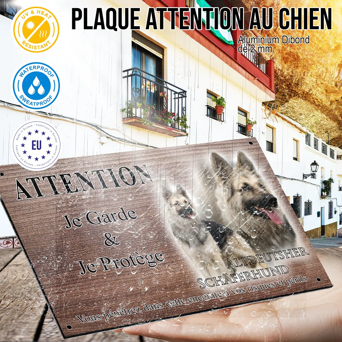 - Plaque Attention au chien ancien berger allemand : signalétique claire et dissuasive