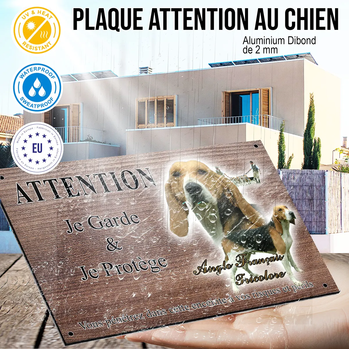 Plaque attention au chien Anglo Français De Petite Vennerie métal résistant extérieur
