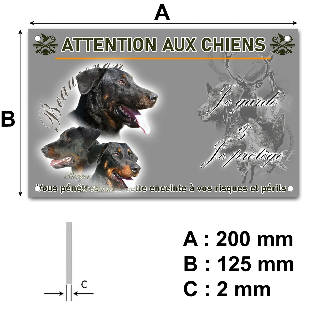 - Plaque Attention au chien beauceron : signalétique claire et dissuasive
