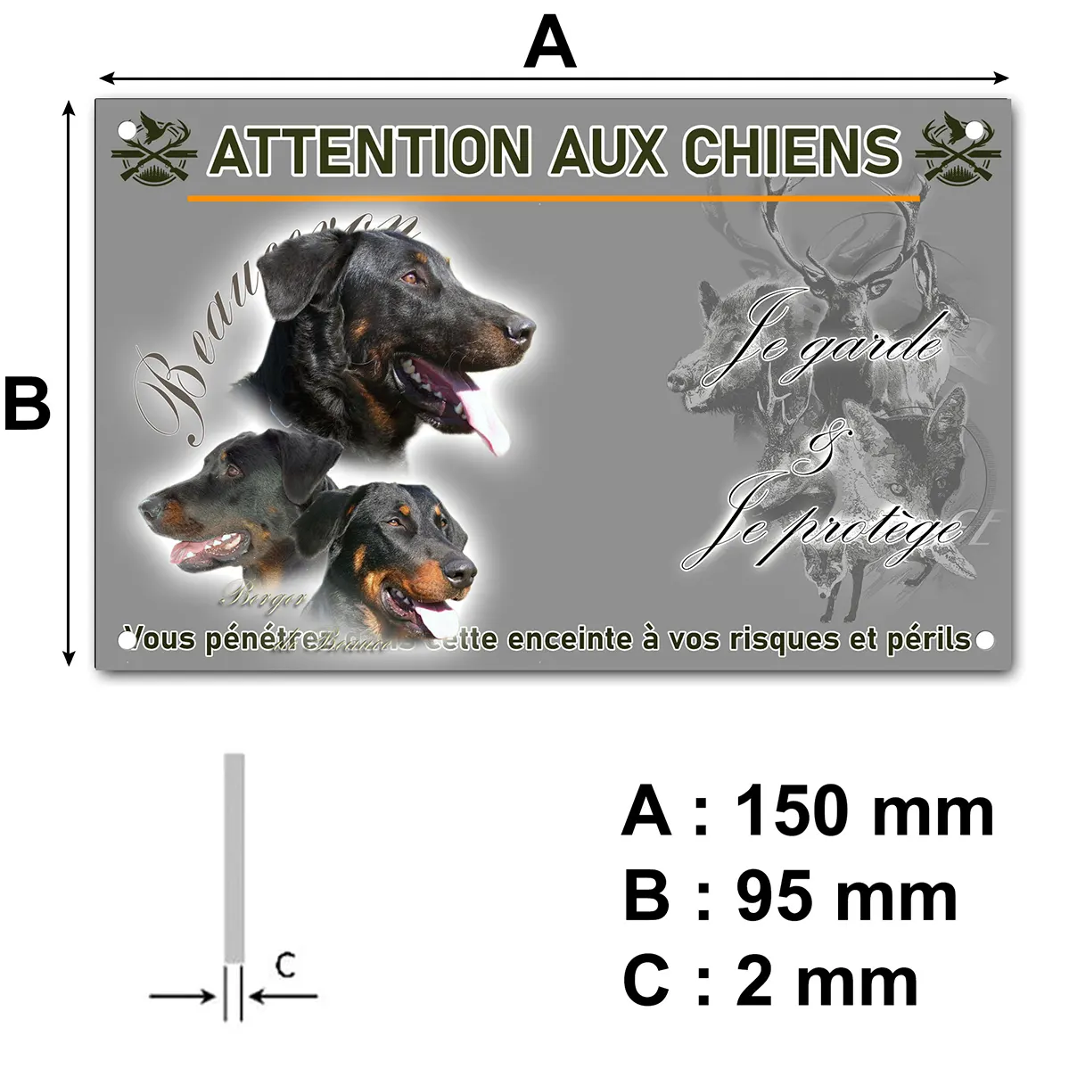 Pour en savoir plus sur notre gamme de plaque attention au chien beauceron