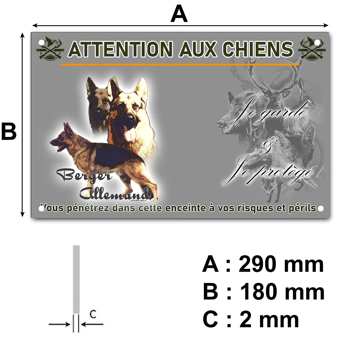 - Plaque Attention au chien berger allemand : signalétique claire et dissuasive