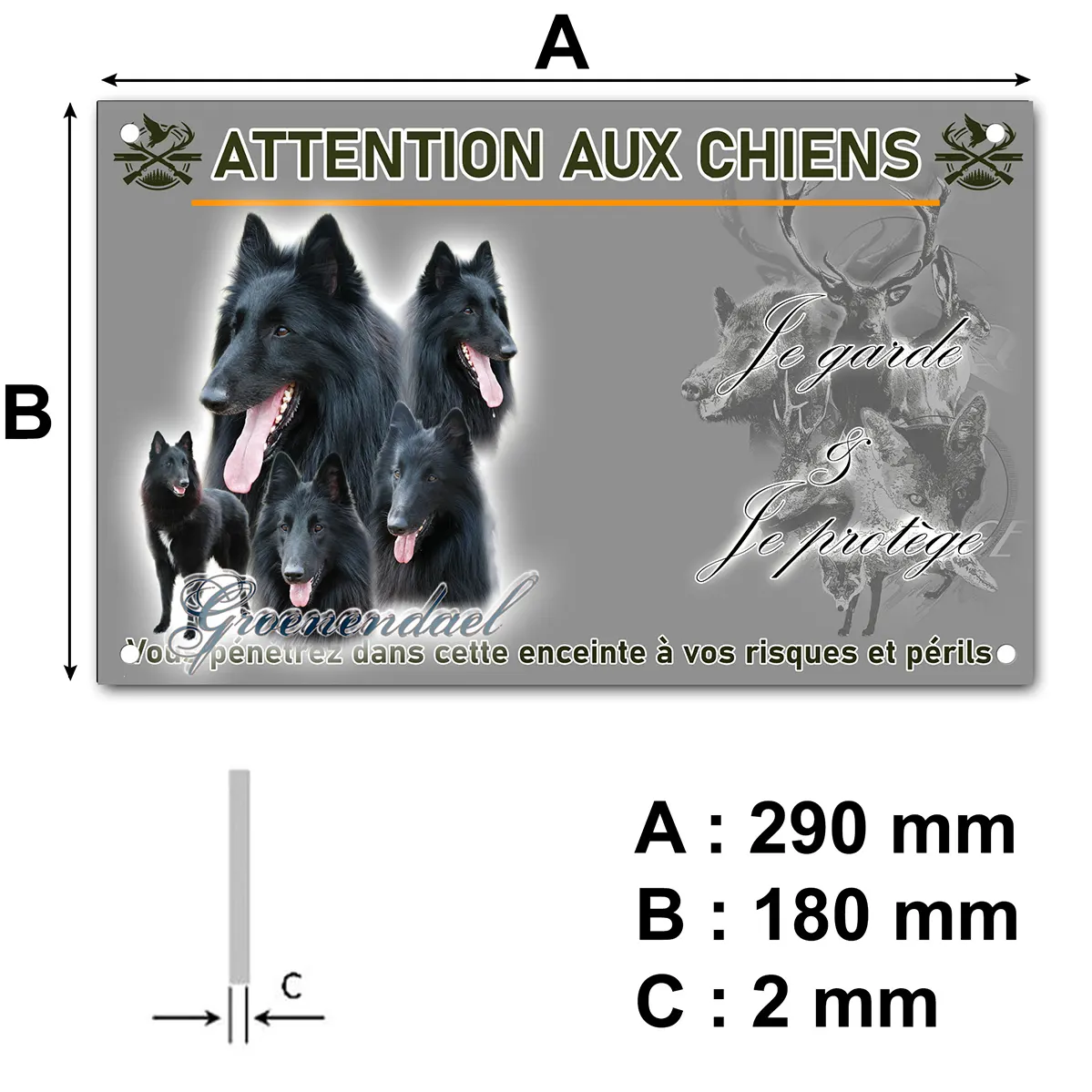 Plaque attention au chien Berger Belge Groenendael métal résistant extérieur