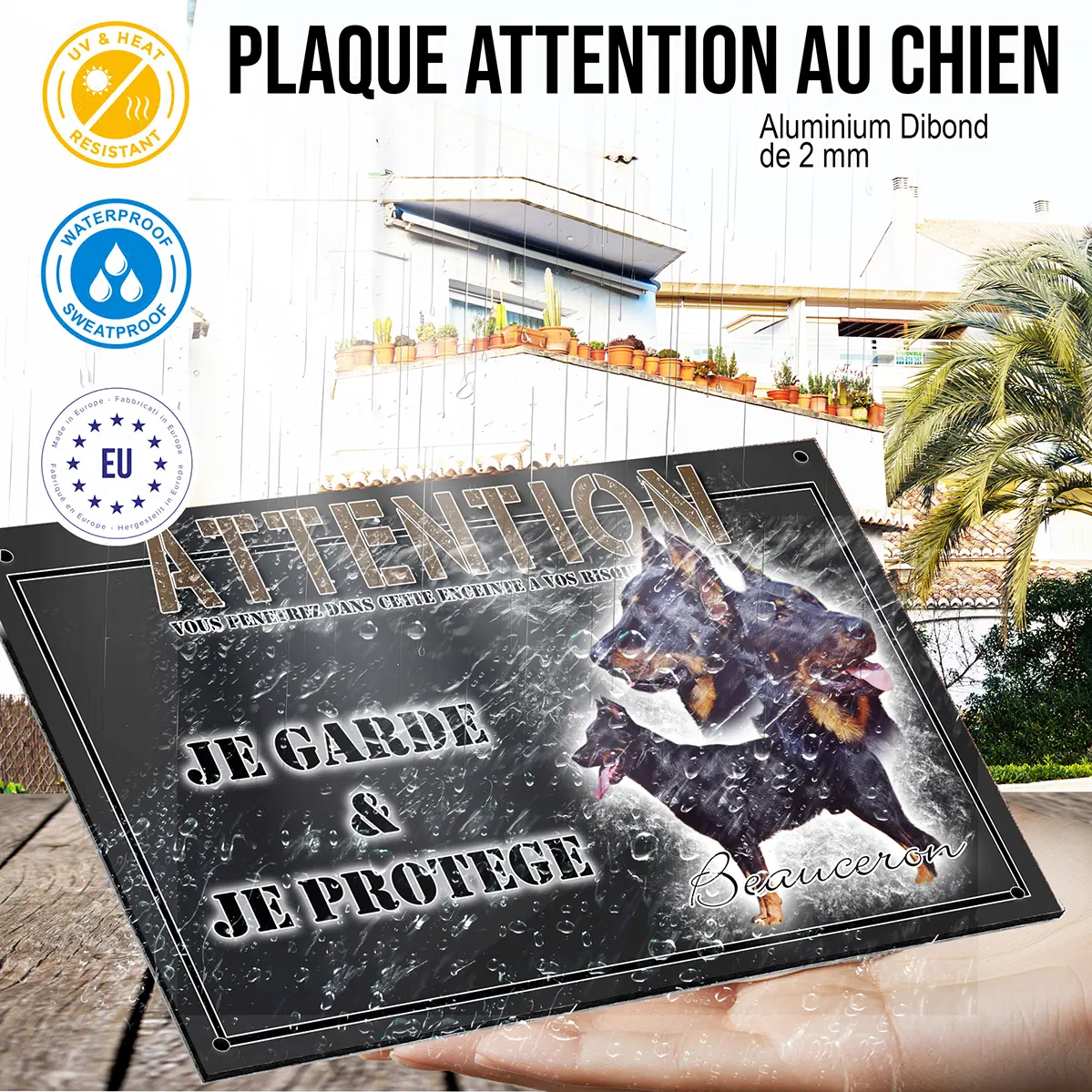 Plaque attention au chien Berger De Beauce métal résistant extérieur