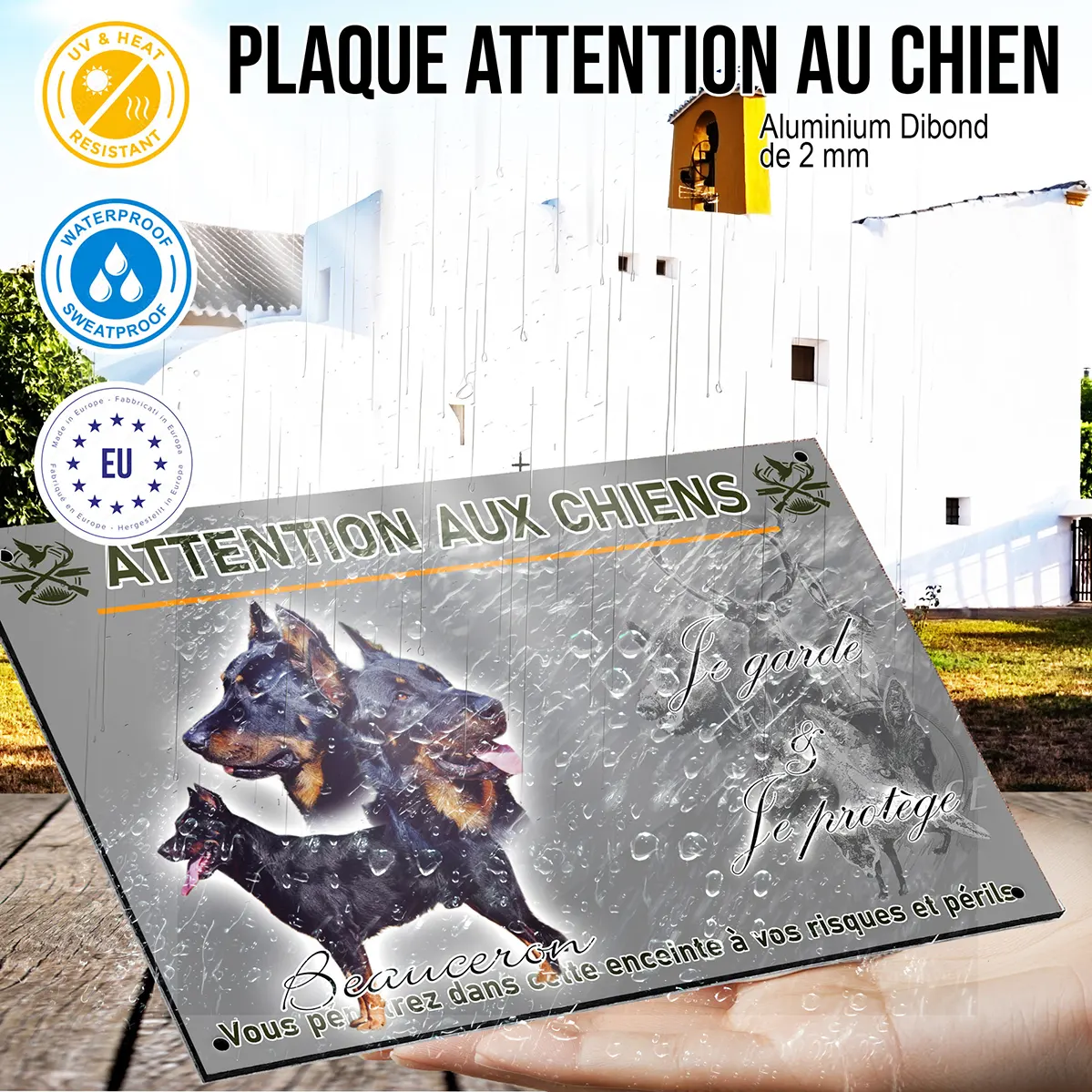 • Plaque Attention au chien berger de beauce : signalétique claire et dissuasive
