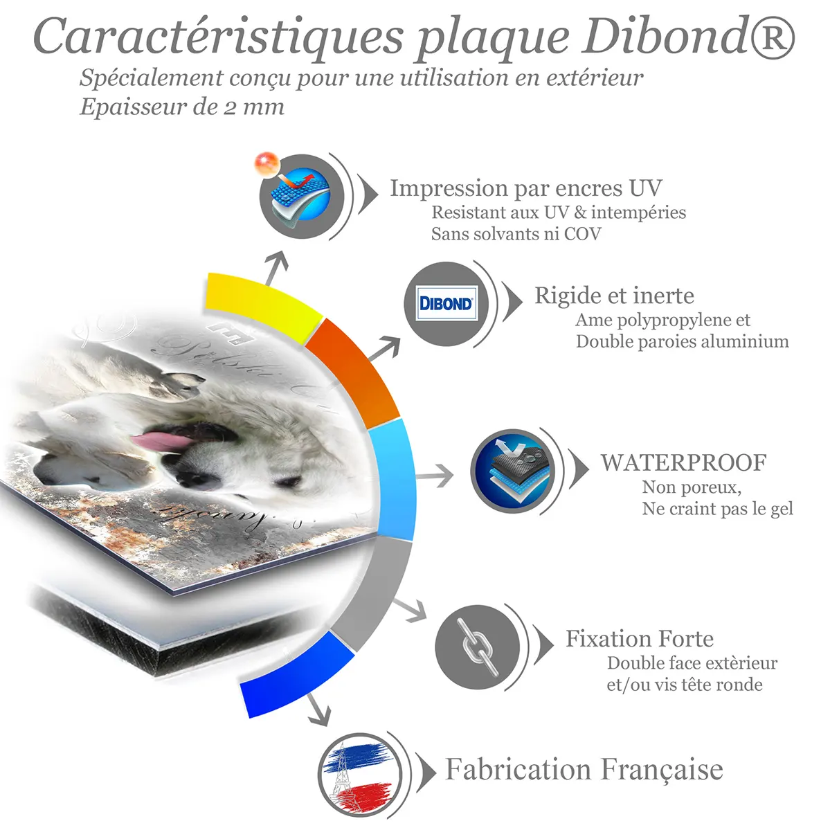 Oui, la plaque est fabriquée en aluminium Dibond de 2 mm et imprimée en UV. Elle ne craint ni la pluie, ni le soleil, ni le gel. Elle peut rester fixée dehors toute l’année sans perdre ses couleurs.