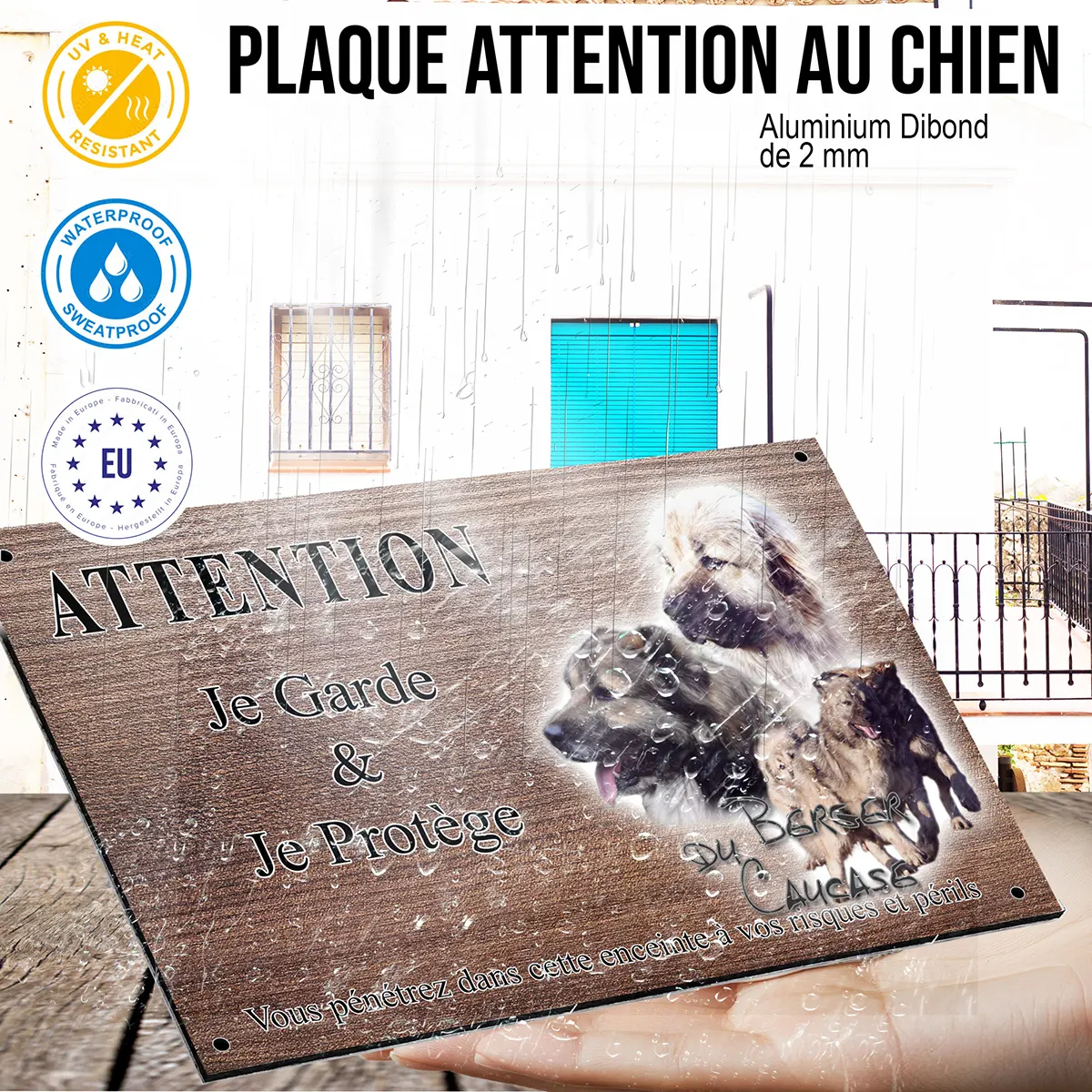 - Plaque Attention au chien berger du caucase : signalétique claire et dissuasive