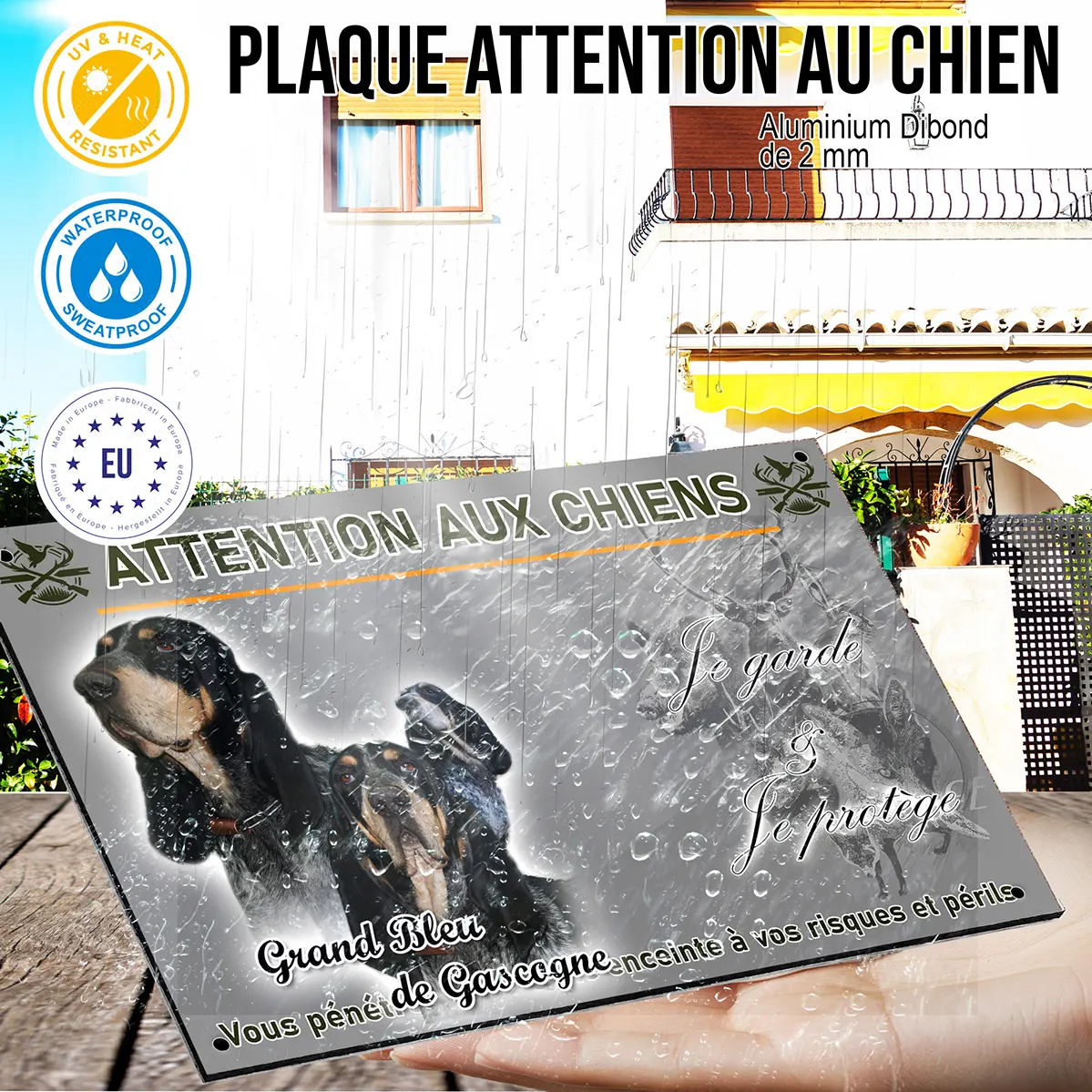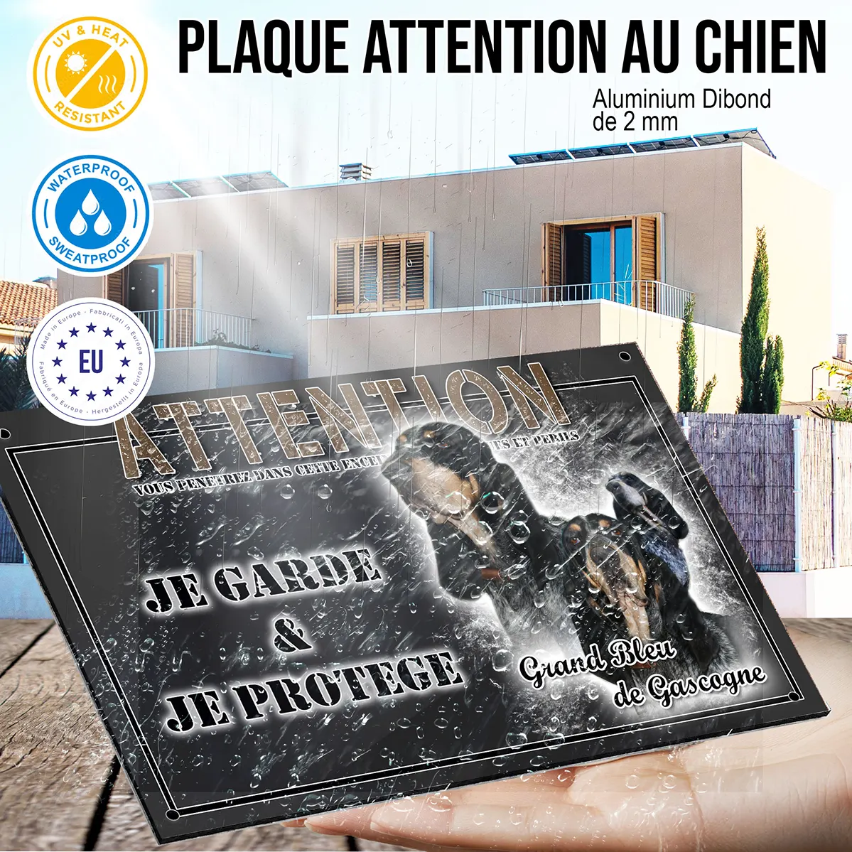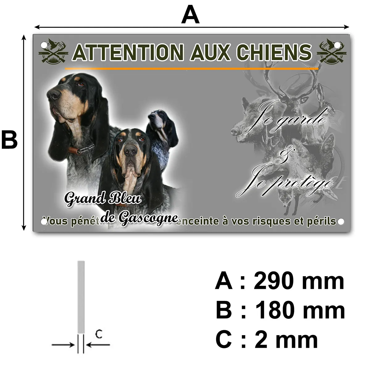 - Plaque Attention au chien bleu de gascogne : signalétique claire et dissuasive