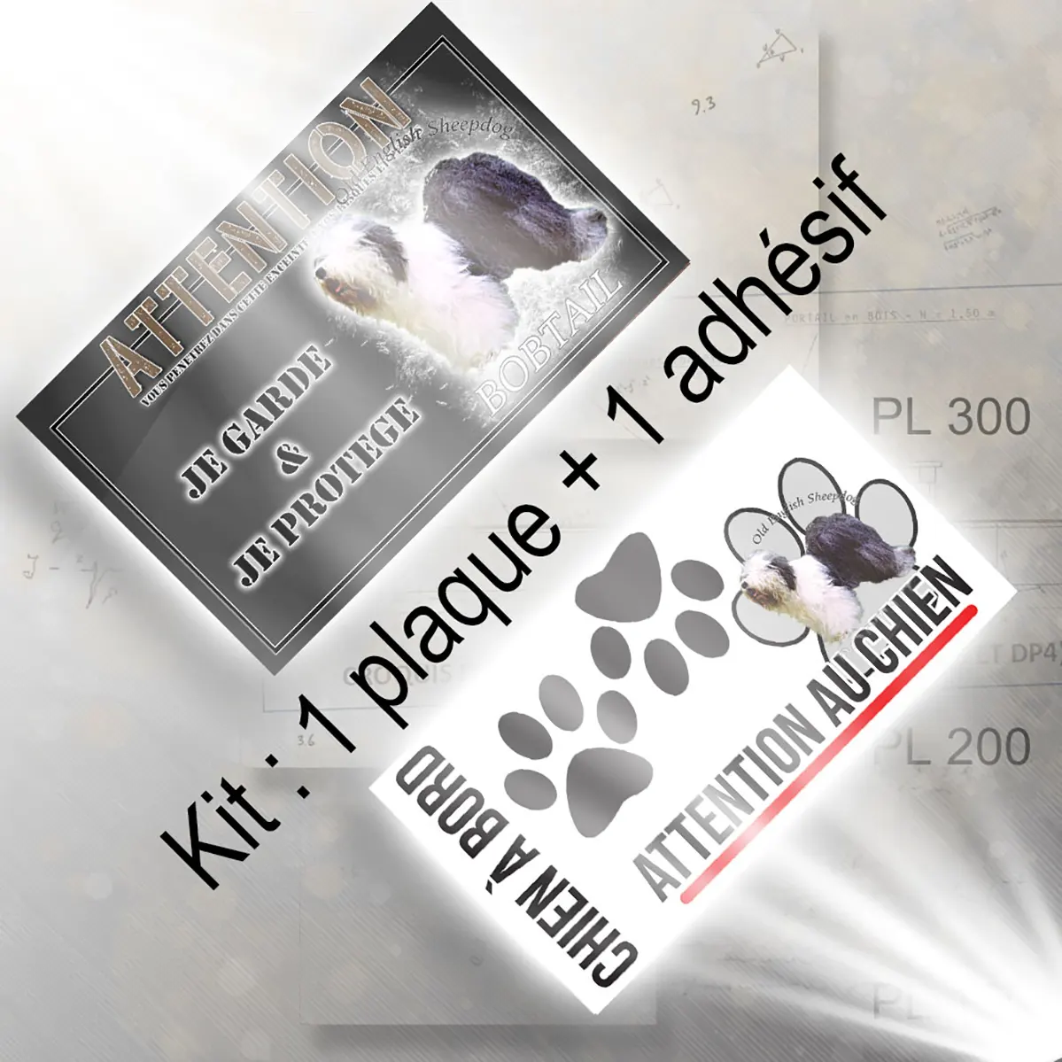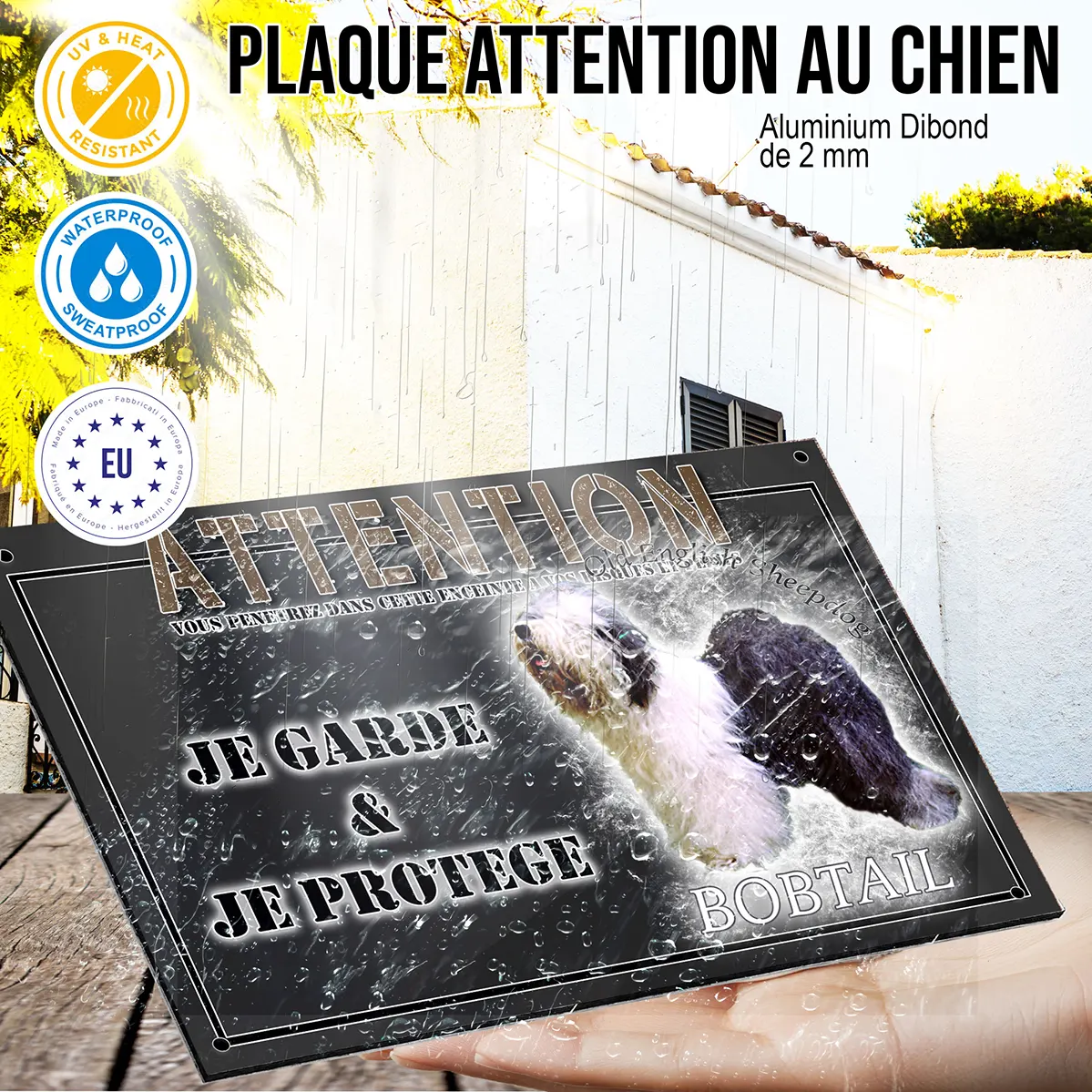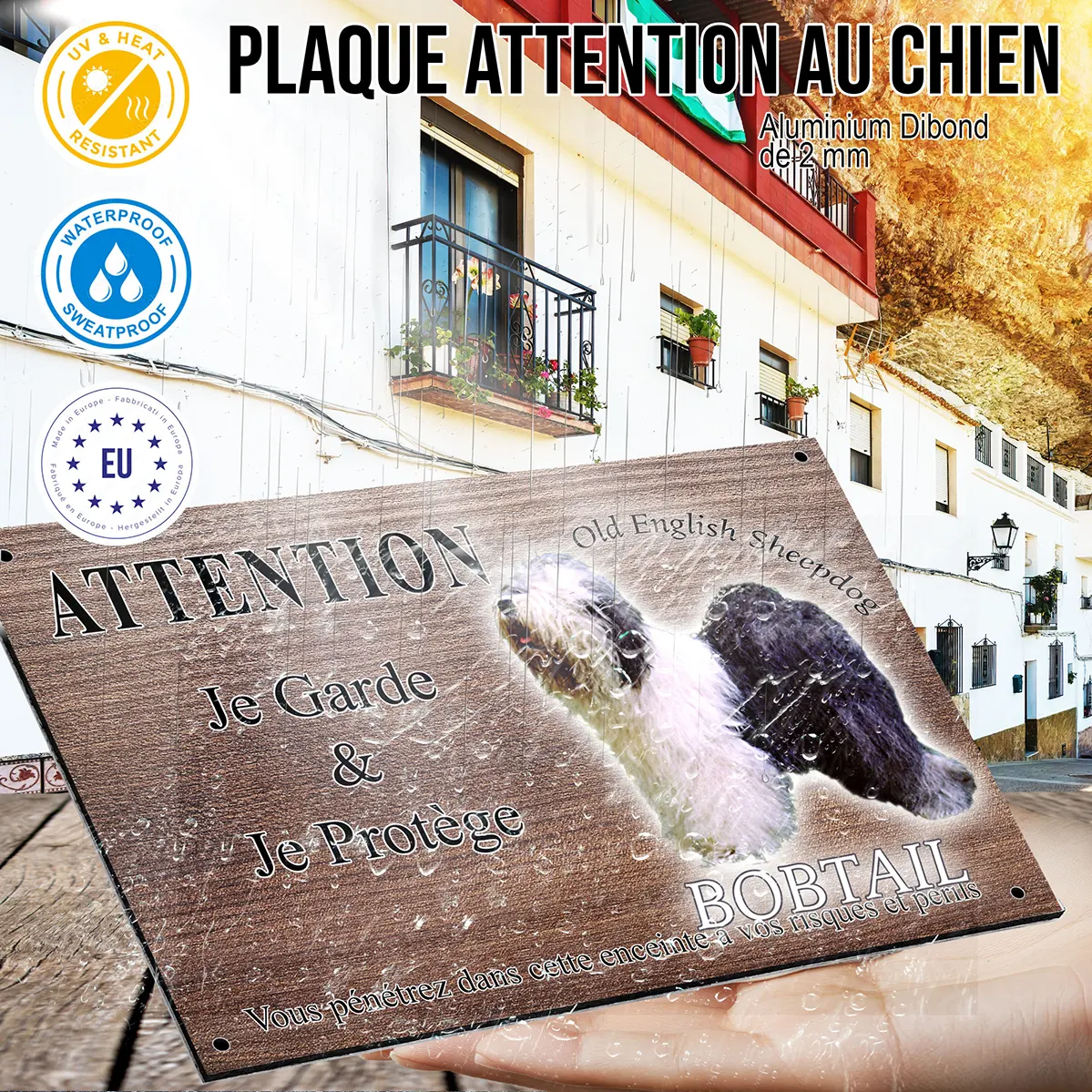 - Plaque Attention au chien bobtail : signalétique claire et dissuasive