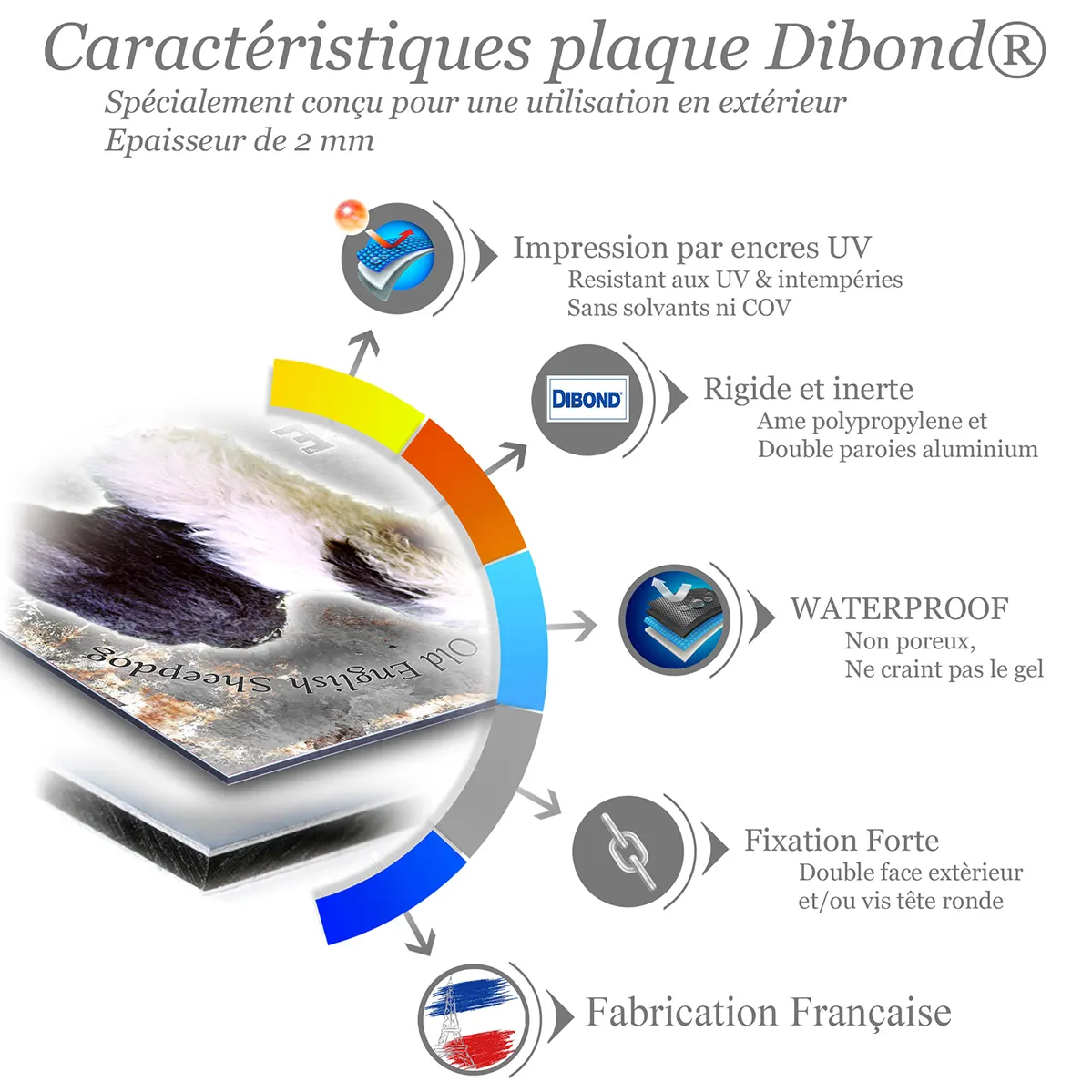 Oui, la plaque est fabriquée en aluminium Dibond de 2 mm et imprimée en UV. Elle ne craint ni la pluie, ni le soleil, ni le gel. Elle peut rester fixée dehors toute l’année sans perdre ses couleurs.