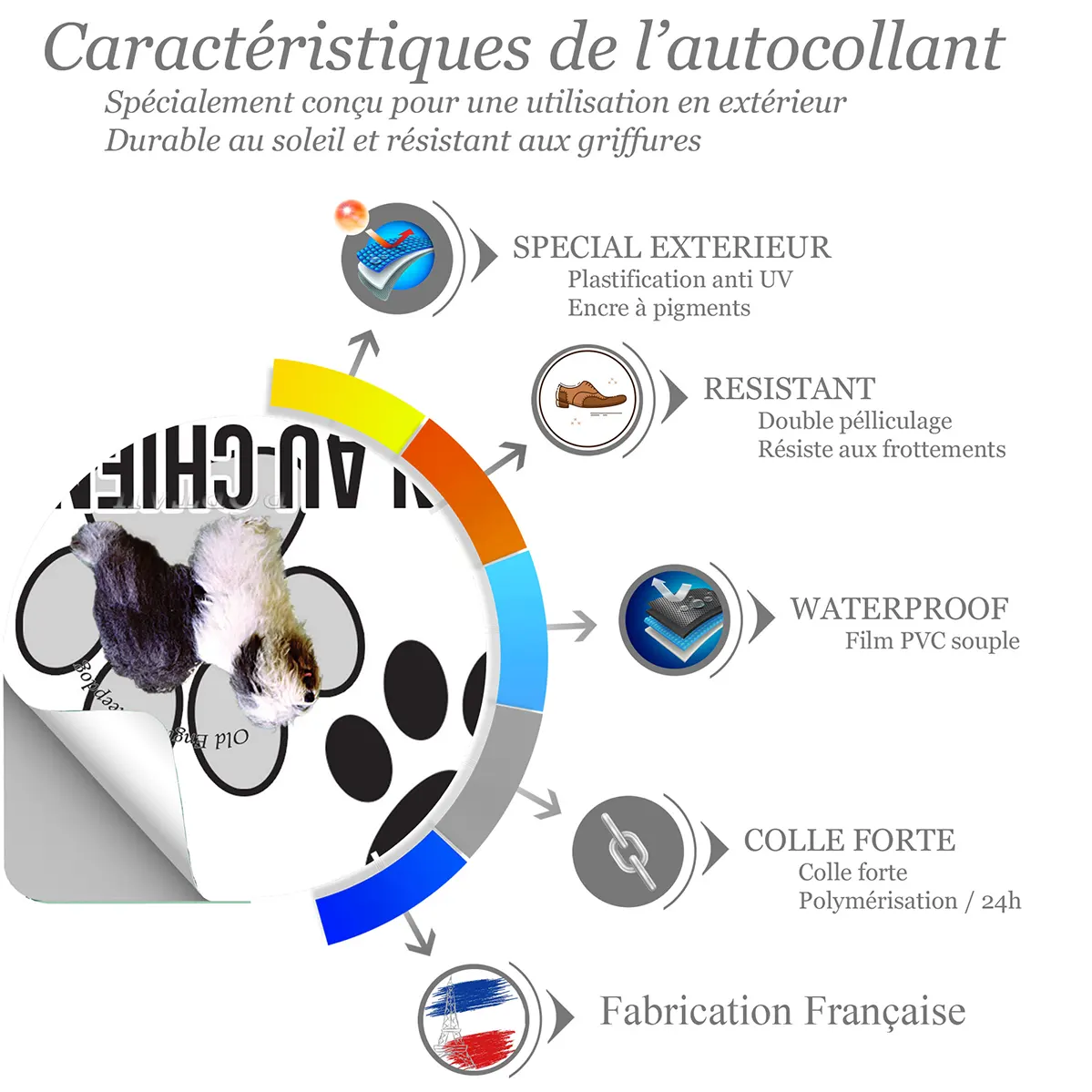 Installer une plaque Attention au chien à l’image réaliste de votre bobtail, avec la mention explicite de la race, est un excellent moyen de renforcer la dissuasion. Elle informe clairement visiteurs, livreurs ou démarcheurs de la présence d’un chien protecteur. Cela agit à la fois comme un message de prévention et comme un rappel du rôle de gardien tenu par votre animal, le tout sans agresser.