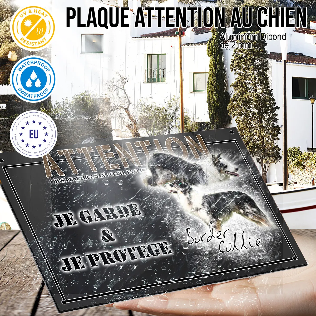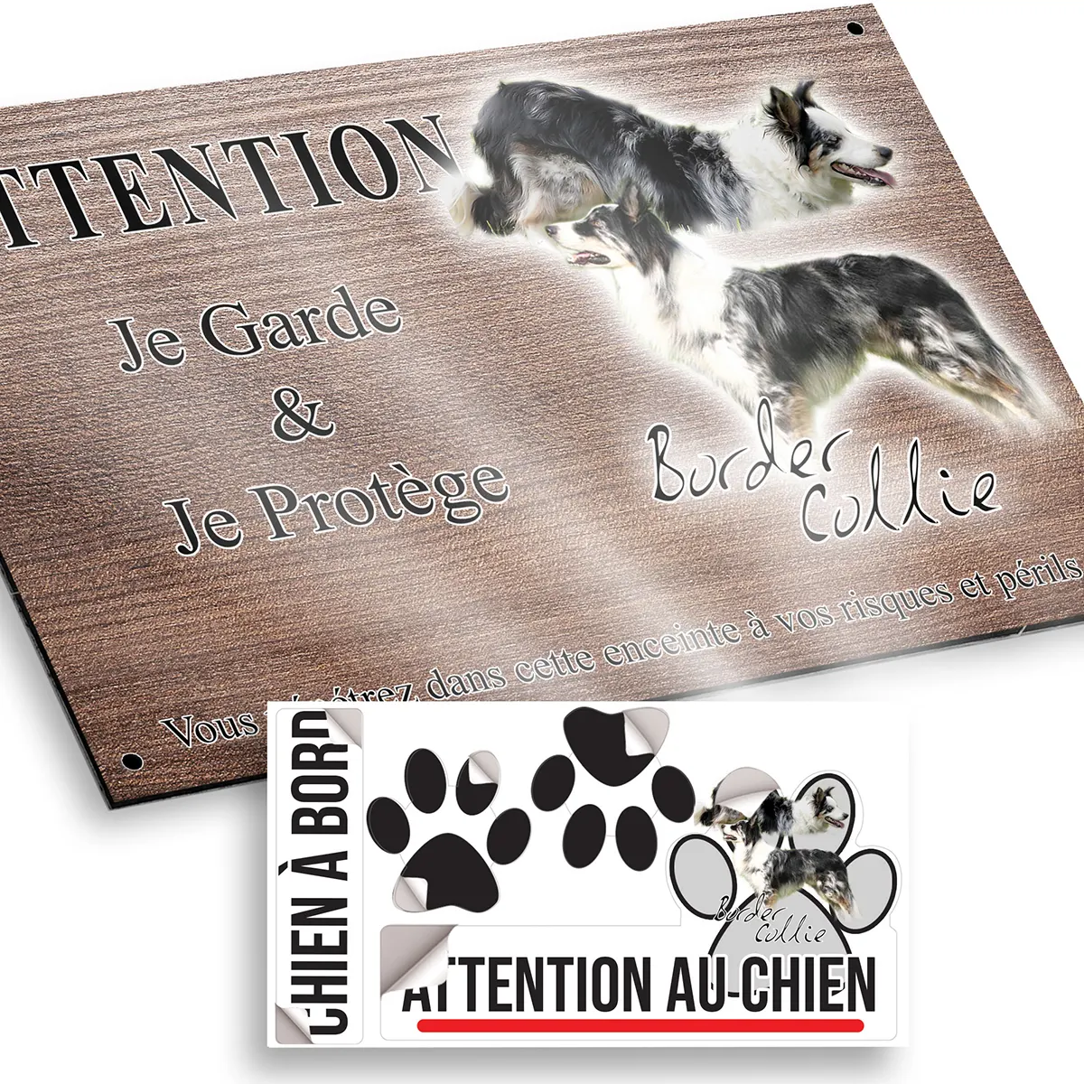 - Plaque Attention au chien border collie arlequin : signalétique claire et dissuasive