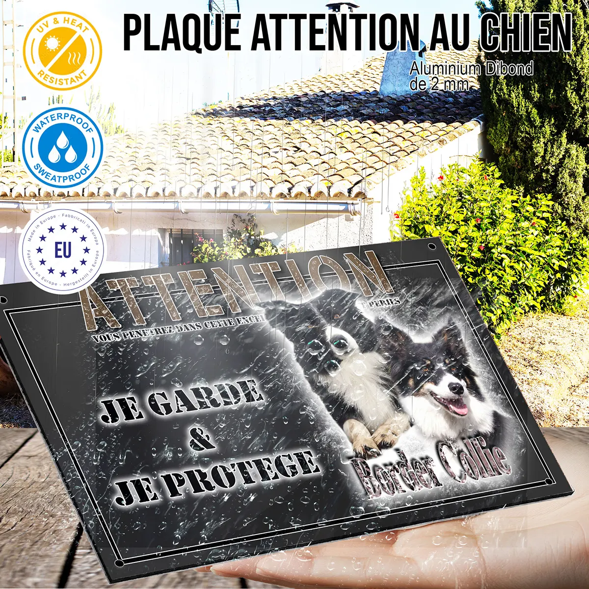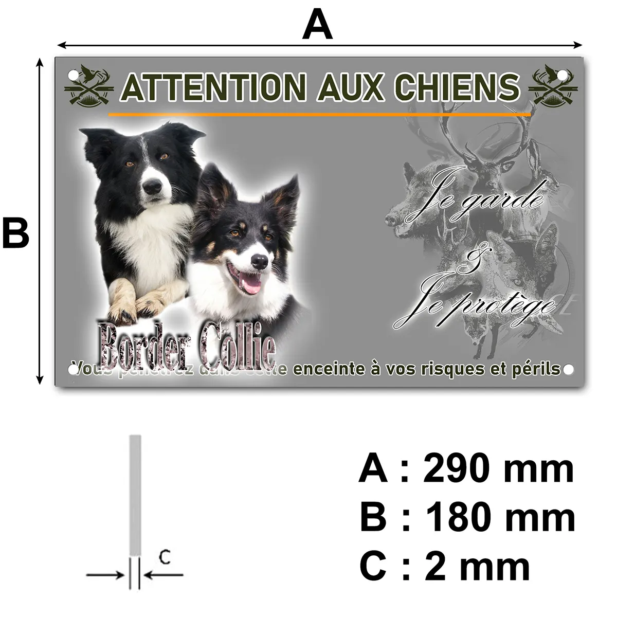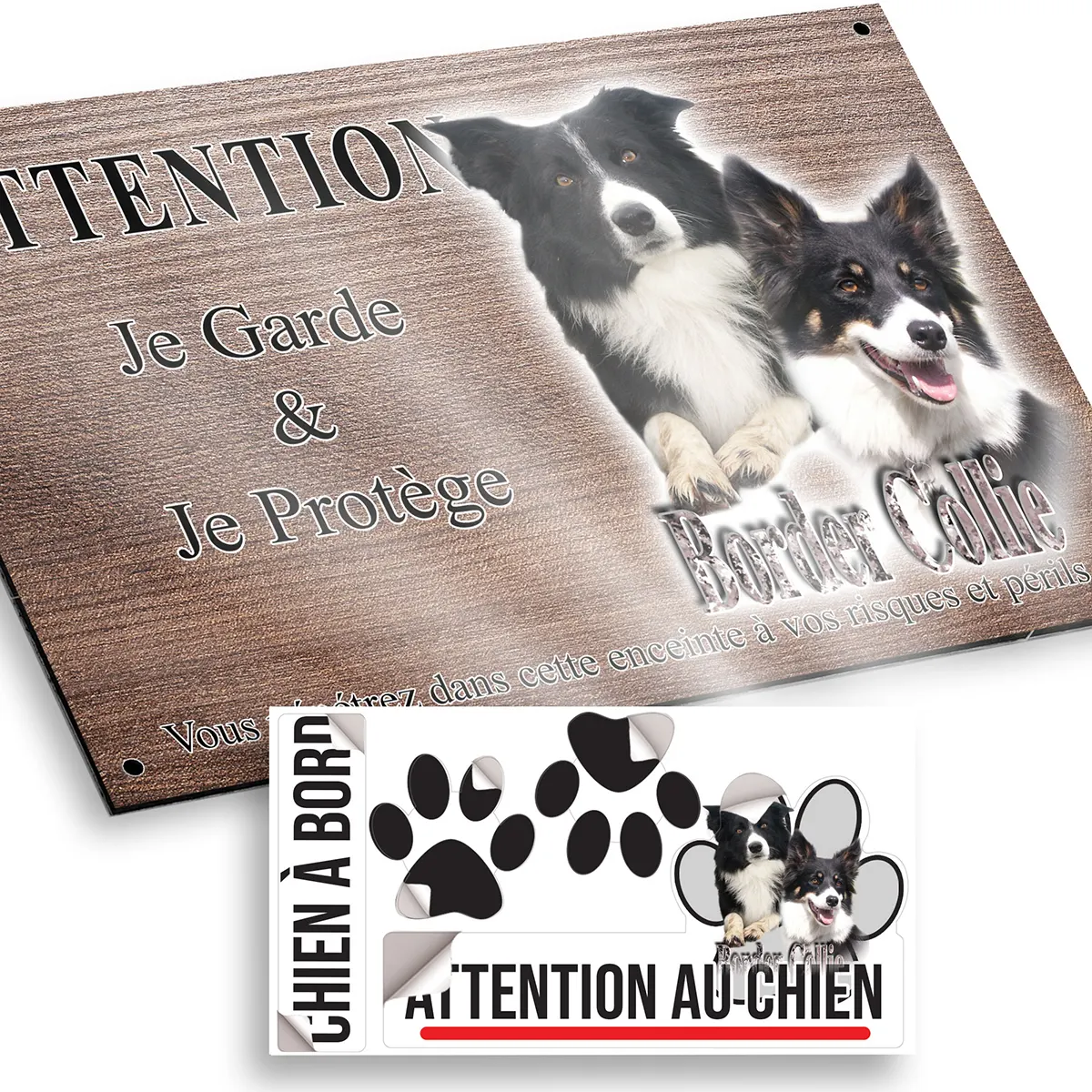 - Plaque Attention au chien border collie : signalétique claire et dissuasive
