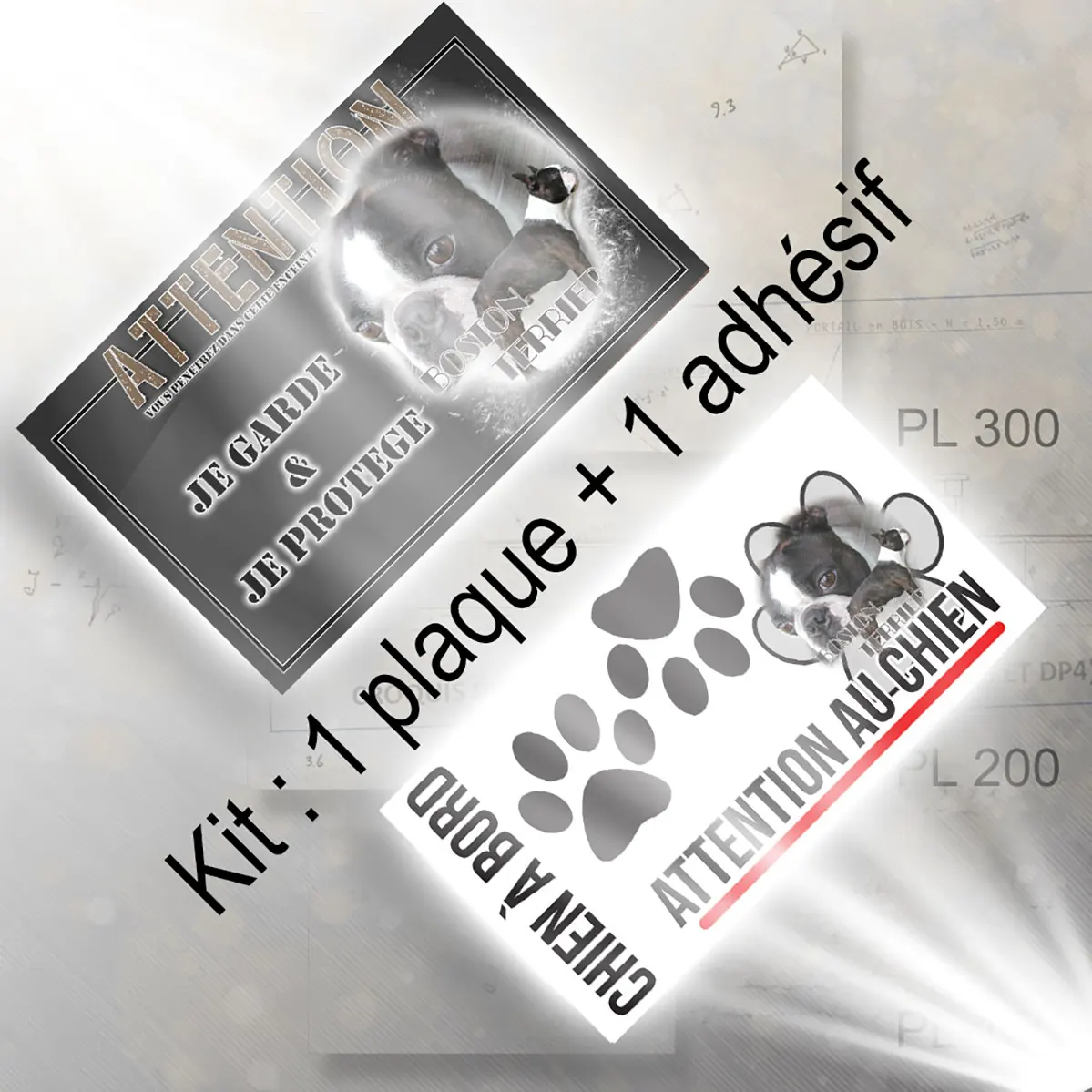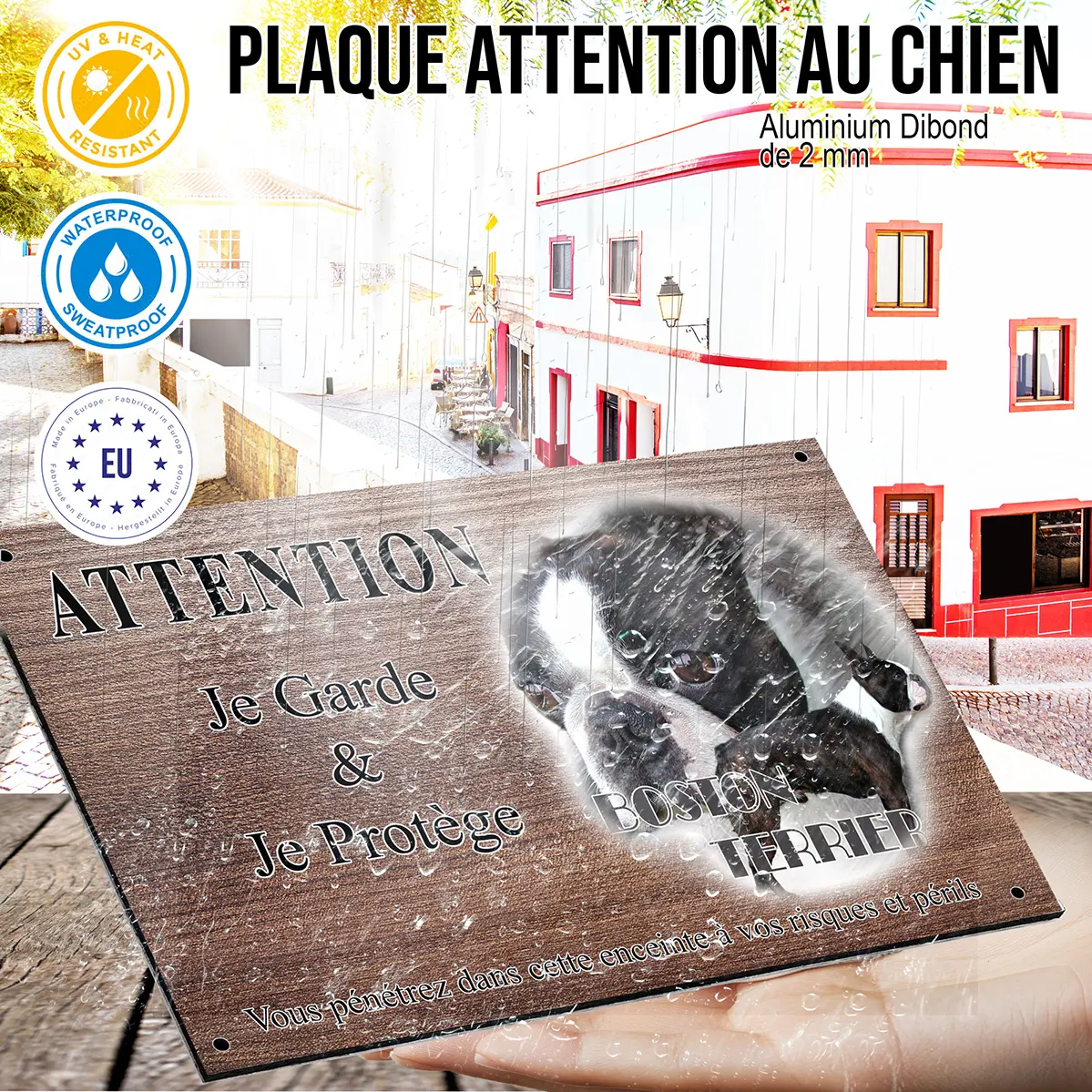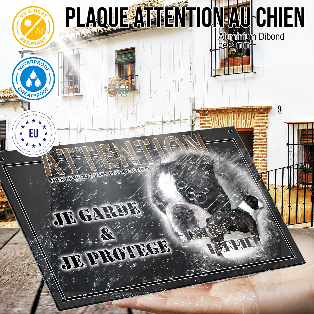 - Plaque Attention au chien boston terrier : signalétique claire et dissuasive