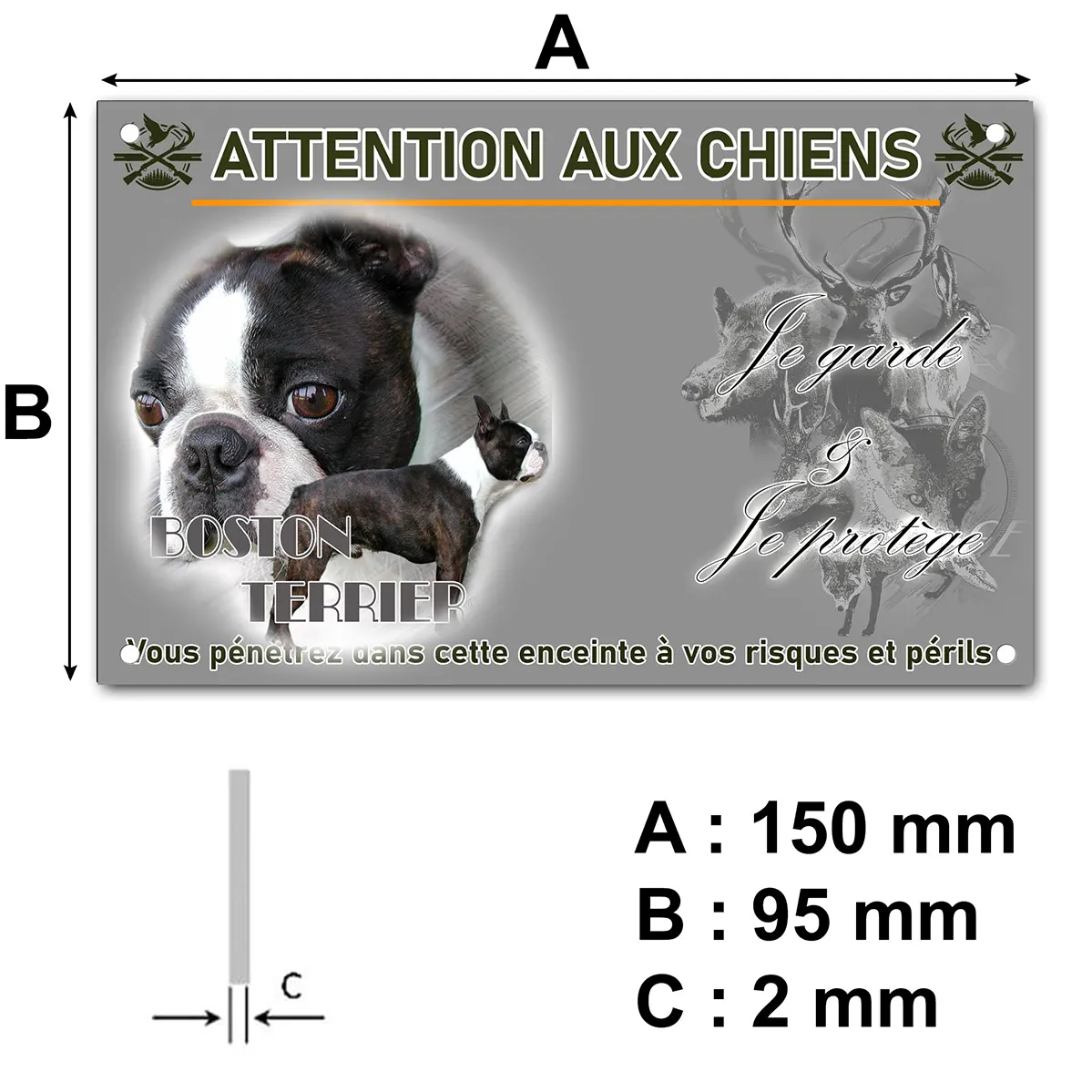 Plaque attention au chien Boston Terrier métal résistant extérieur