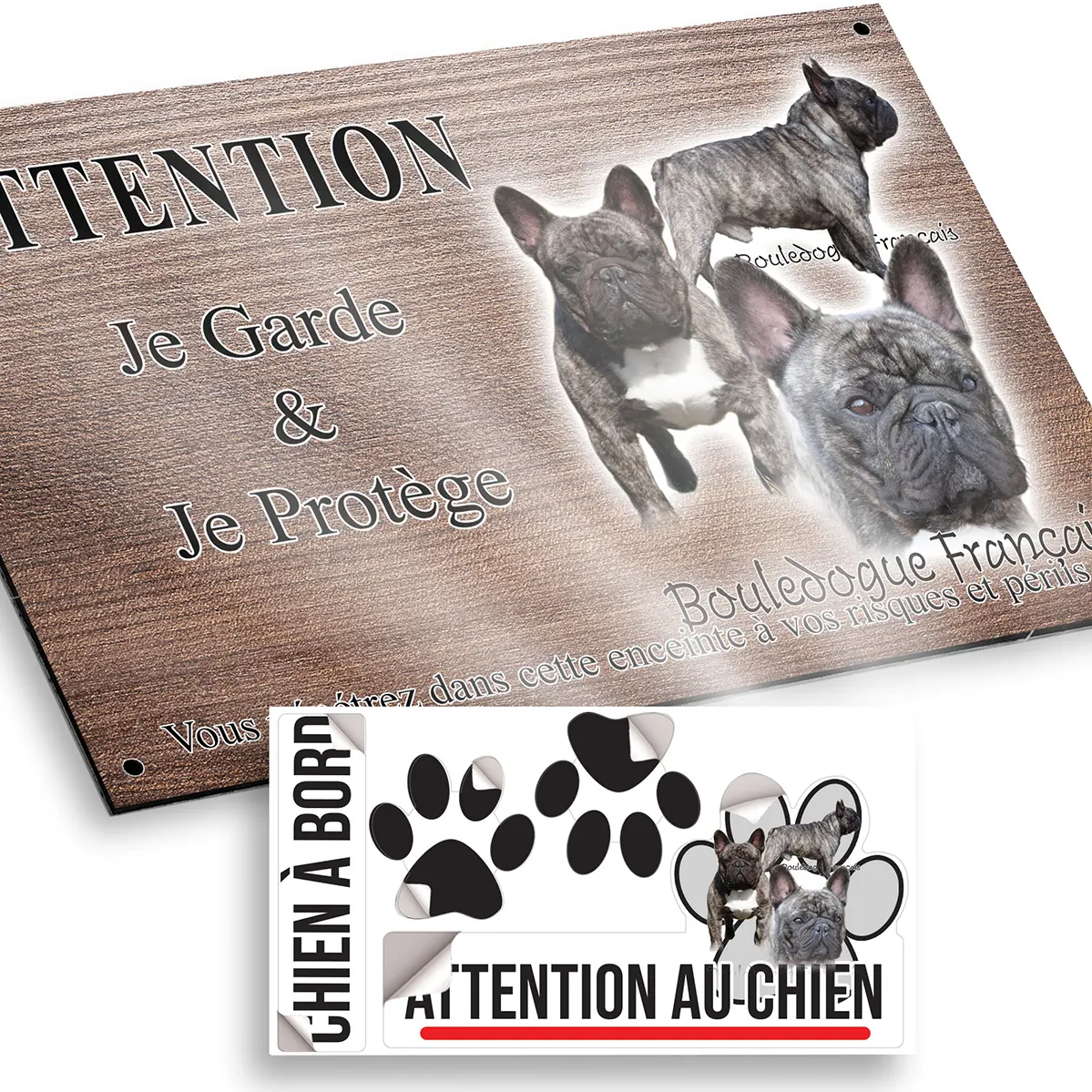 Pour en savoir plus sur notre gamme de plaque attention au chien bouledogue