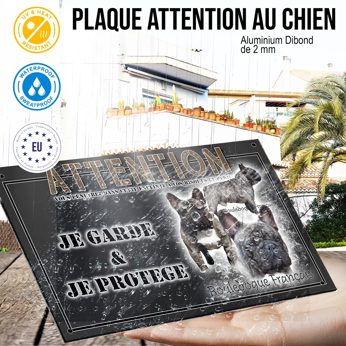 Cette plaque attention au chien bouledogue de haute qualité, conçue en métal résistant aux intempéries, est parfaite pour dissuader les visiteurs indésirables tout en ajoutant une touche personnalisée à votre entrée.