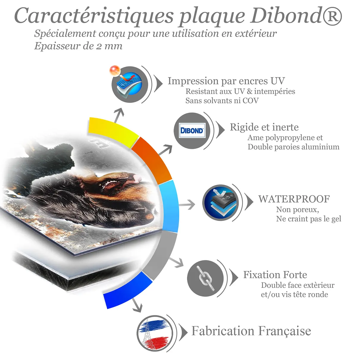 Affirmer la présence d’un chien tel que le Bouvier Bernois avec une plaque Attention au chien constitue une réelle mesure de dissuasion. Elle avertit clairement les visiteurs comme les indésirables de la vigilance de ce chien protecteur. De plus, cette signalétique basée sur une illustration fidèle du bouvier suisse valorise les qualités de gardien de ce compagnon, tout en conférant un message fermement mais courtoisement formulé.