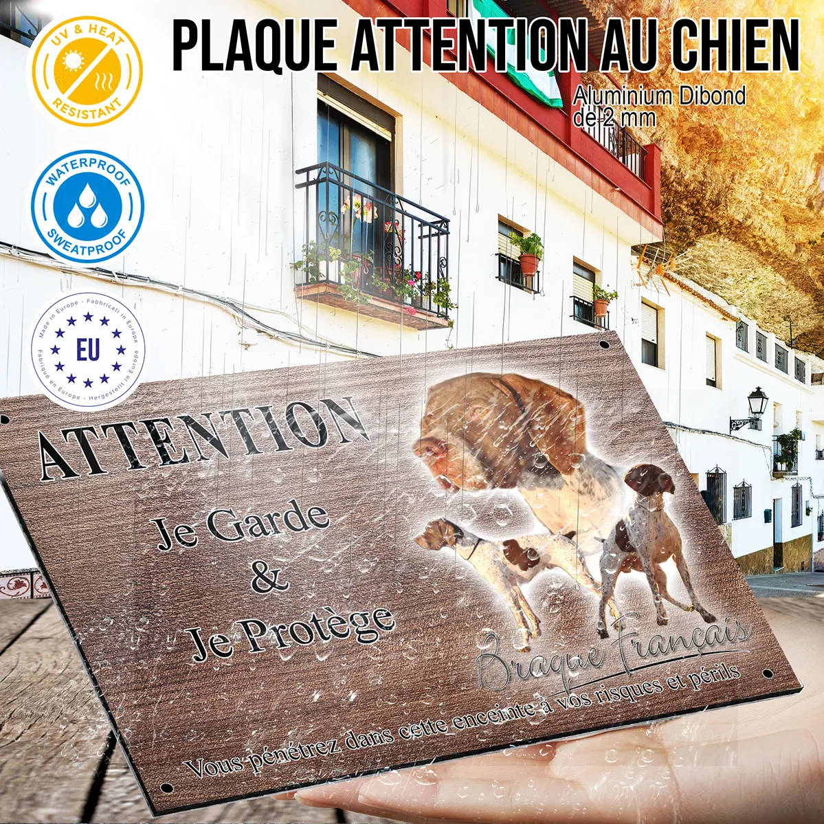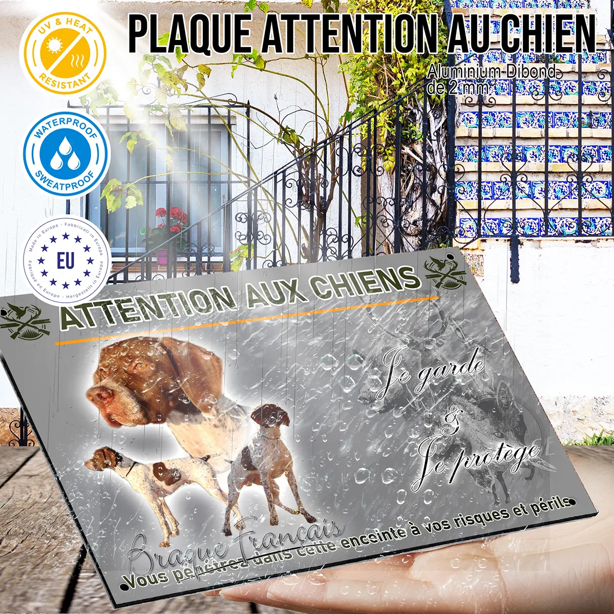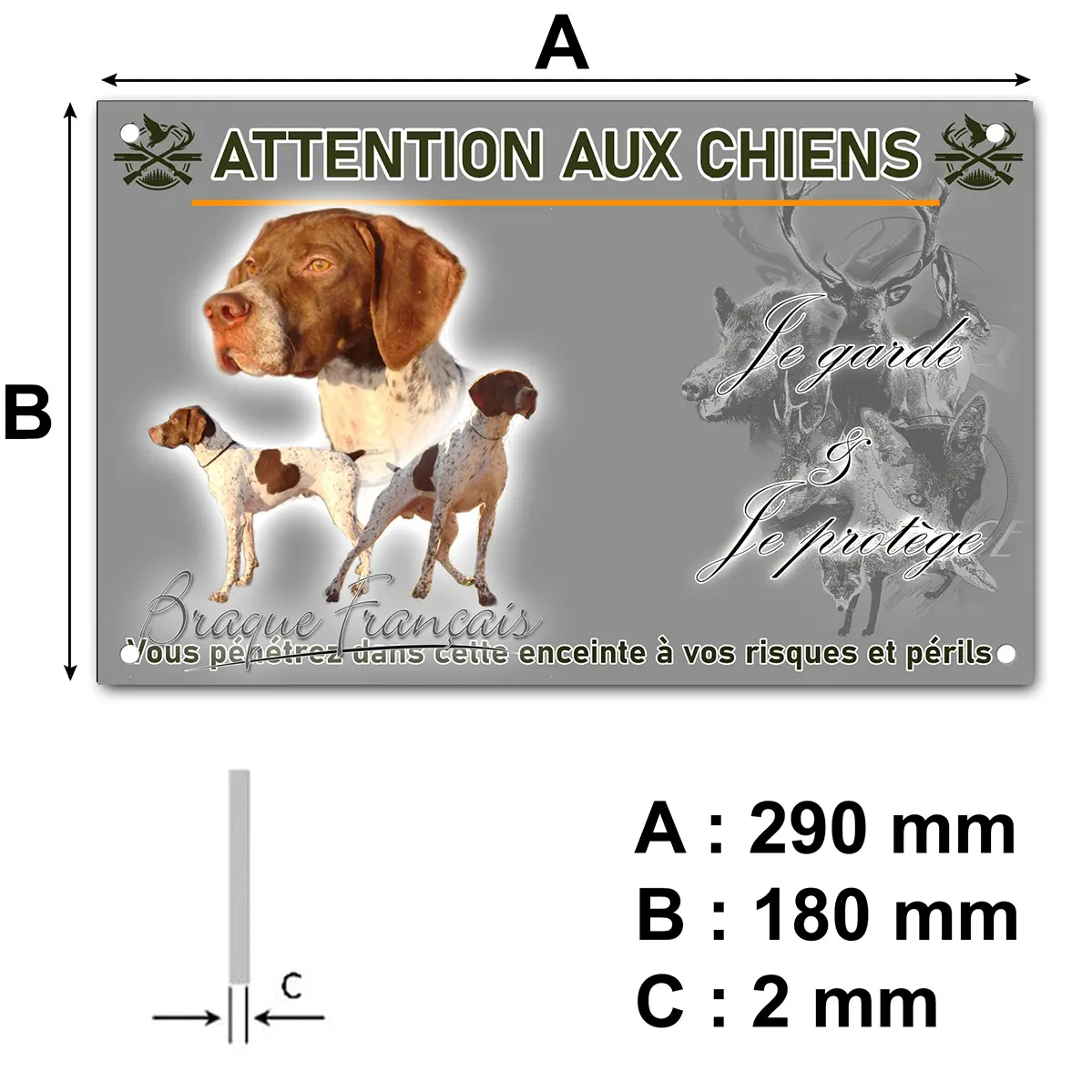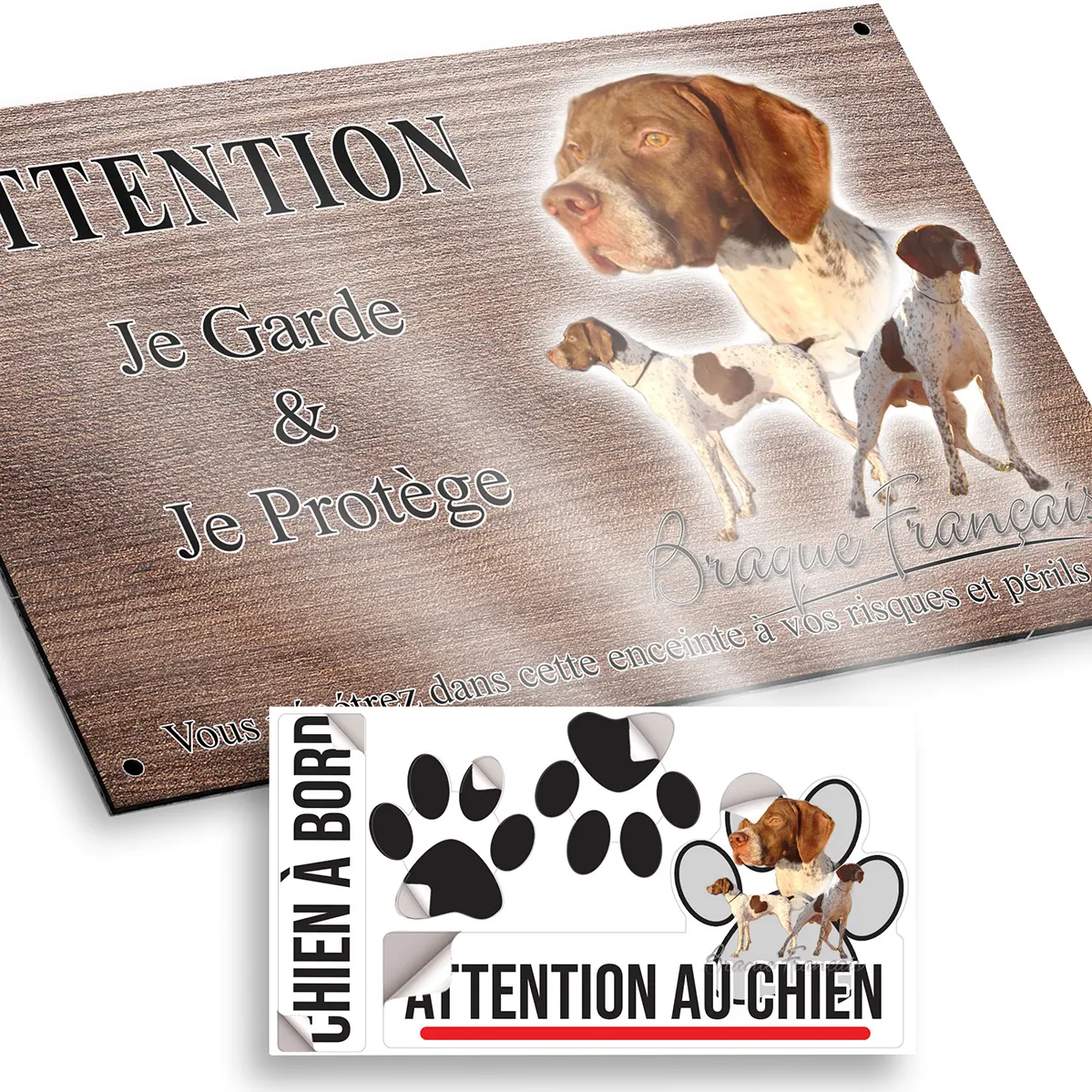 - Plaque Attention au chien braque francais : signalétique claire et dissuasive