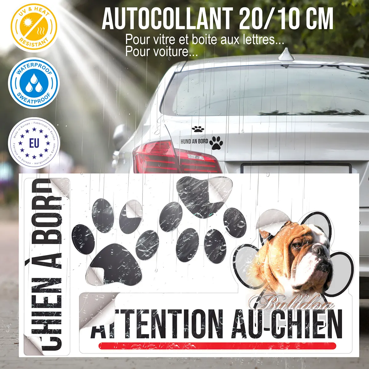 Installer une plaque Attention au chien illustrée par le célèbre bulldog anglais constitue d’abord une mesure de dissuasion efficace. Cette signalétique informe clairement visiteurs, livreurs ou personnes étrangères de la présence d’un animal protecteur sur votre propriété. Il s’agit d’un message respectueux, mais ferme, qui participe à la sécurisation des lieux. Le visage expressif du bulldog anglais en impose et apporte une touche d’originalité à votre portail ou votre clôture.