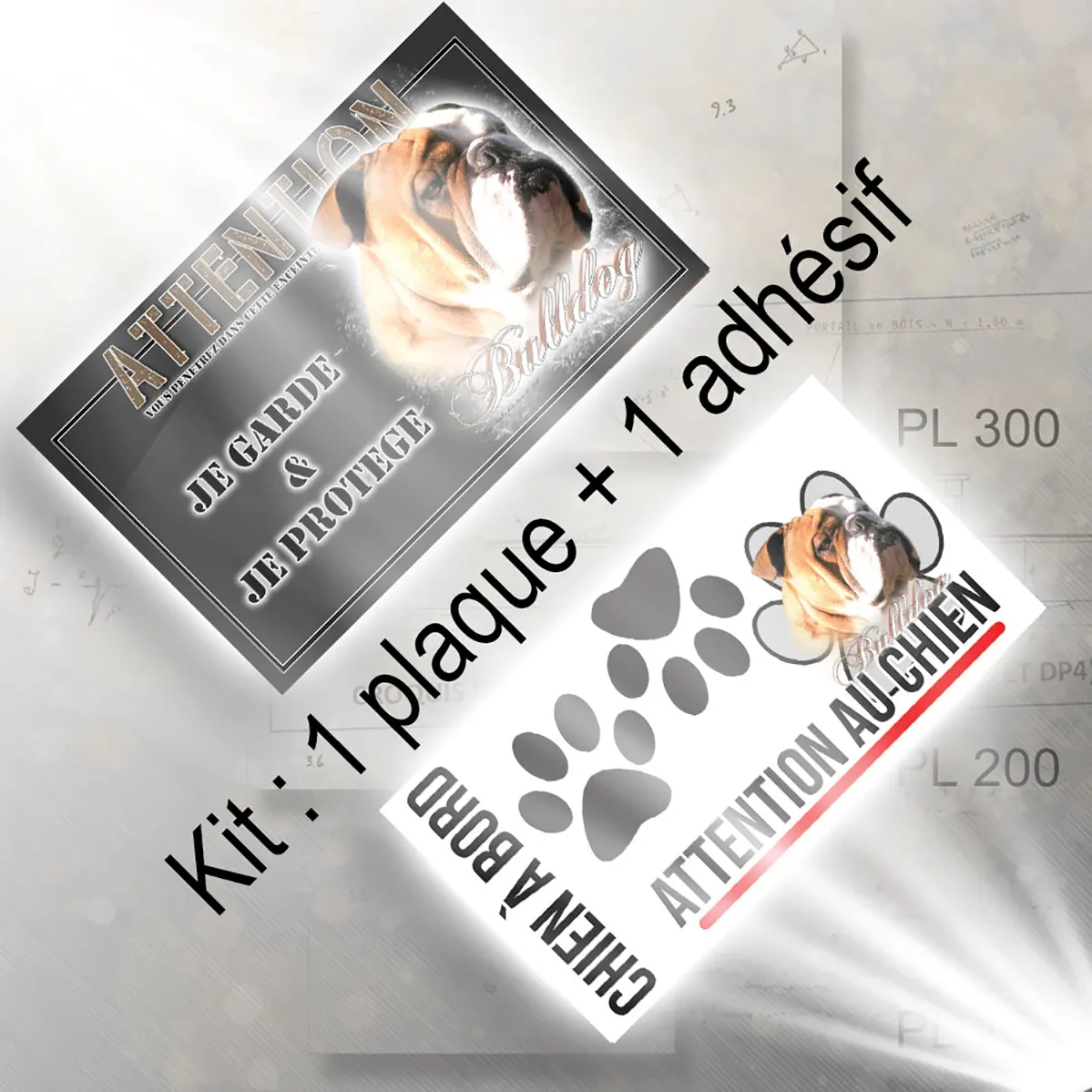 Pour en savoir plus sur notre gamme de plaque attention au chien bulldog anglais