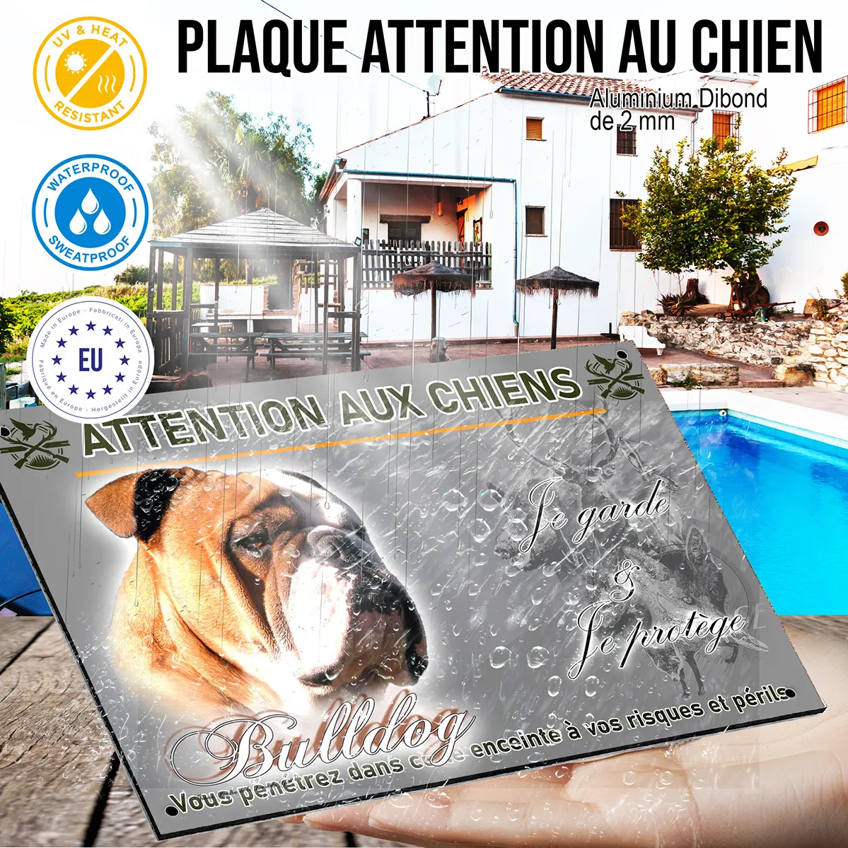 - Plaque Attention au chien bulldog anglais : signalétique claire et dissuasive