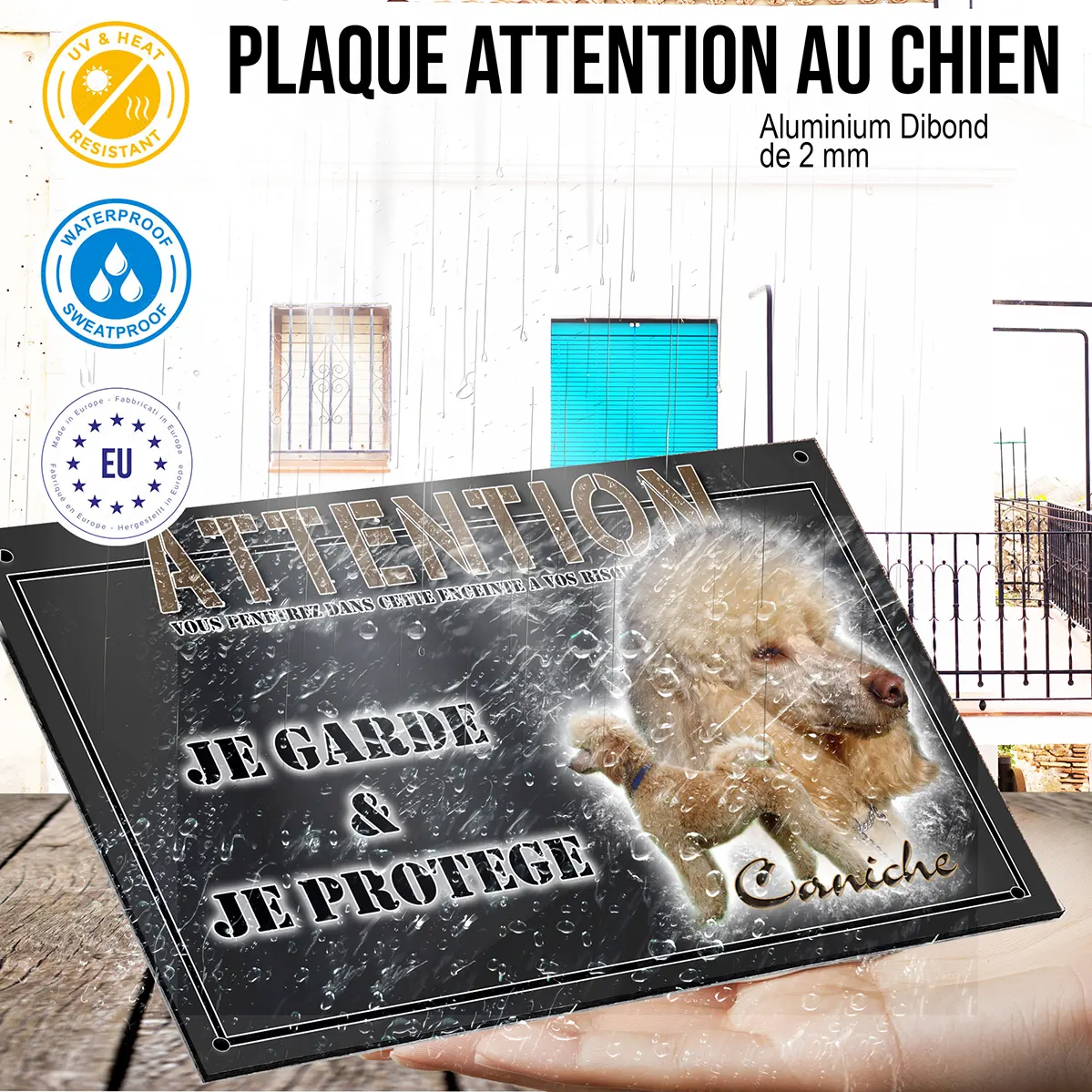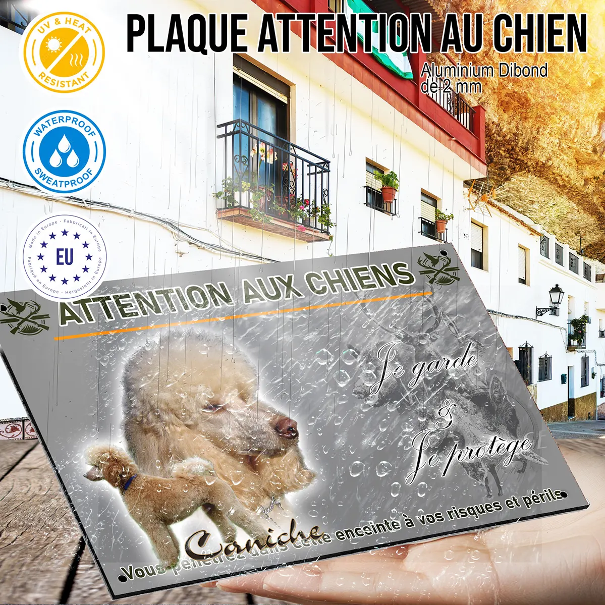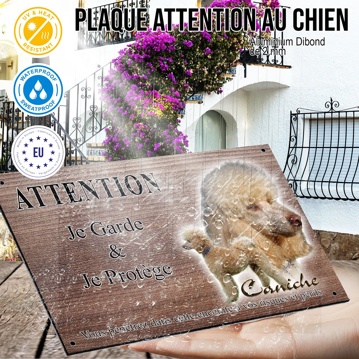 - Plaque Attention au chien caniche abricot : signalétique claire et dissuasive