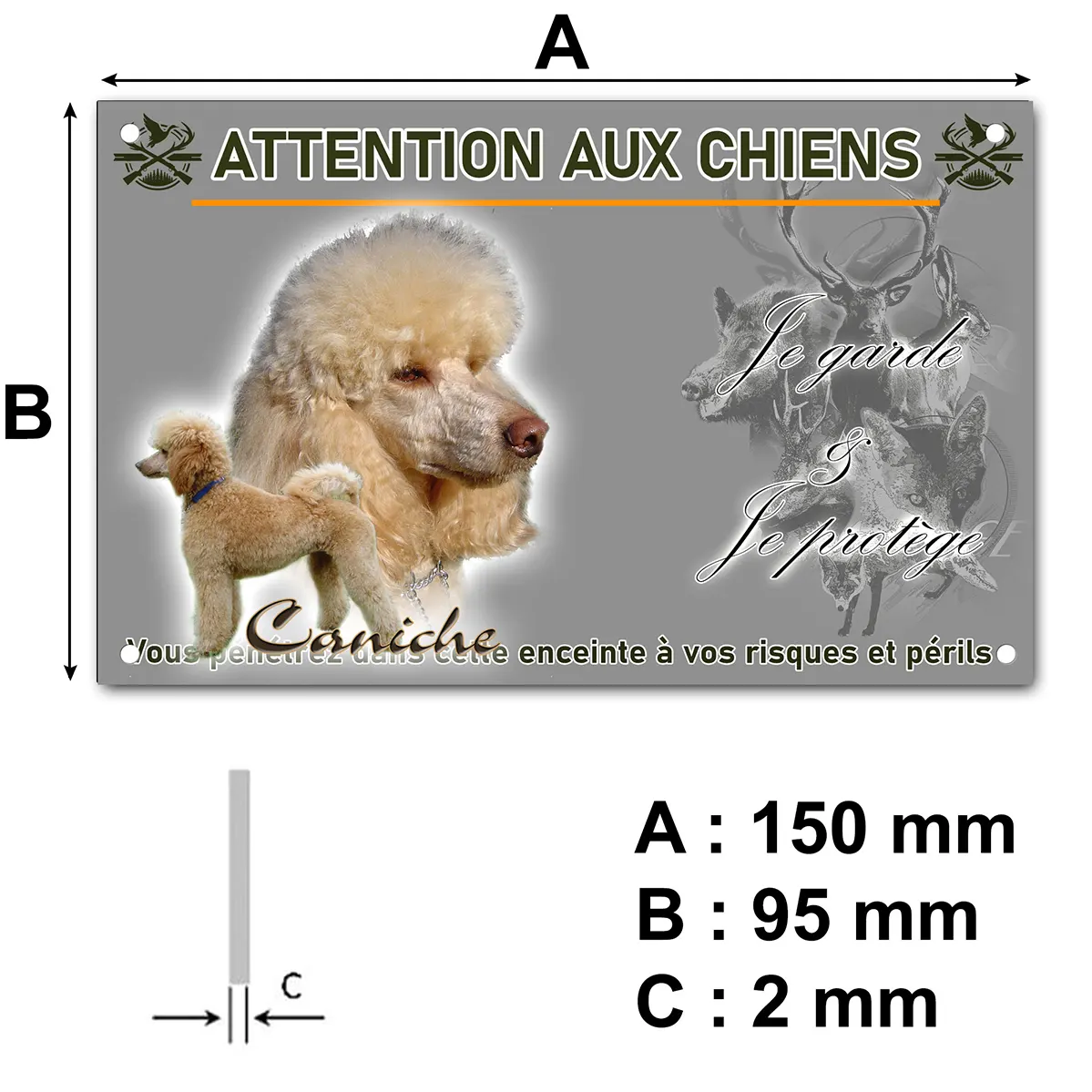 Plaque attention au chien Caniche Abricot métal résistant extérieur