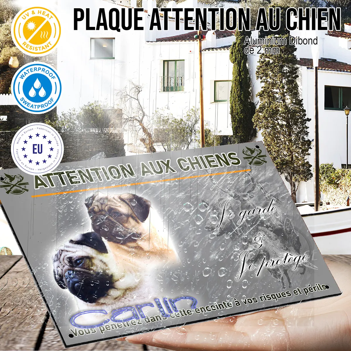 Pour en savoir plus sur notre gamme de plaque attention au chien carlin