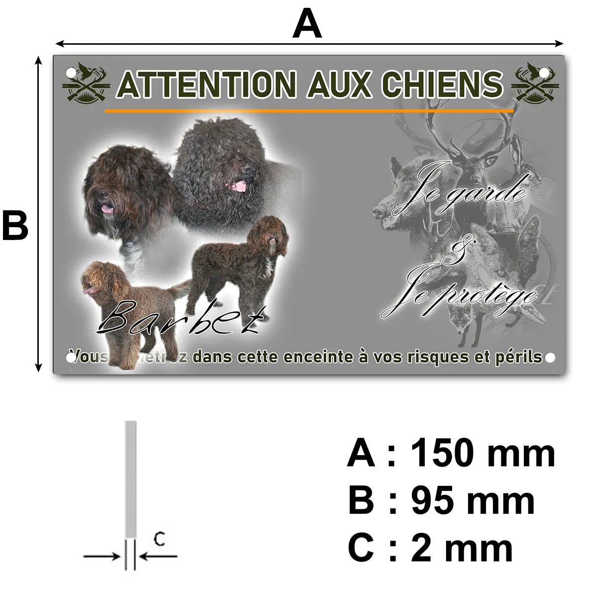 Plaque attention au chien Chien Barbet métal résistant extérieur