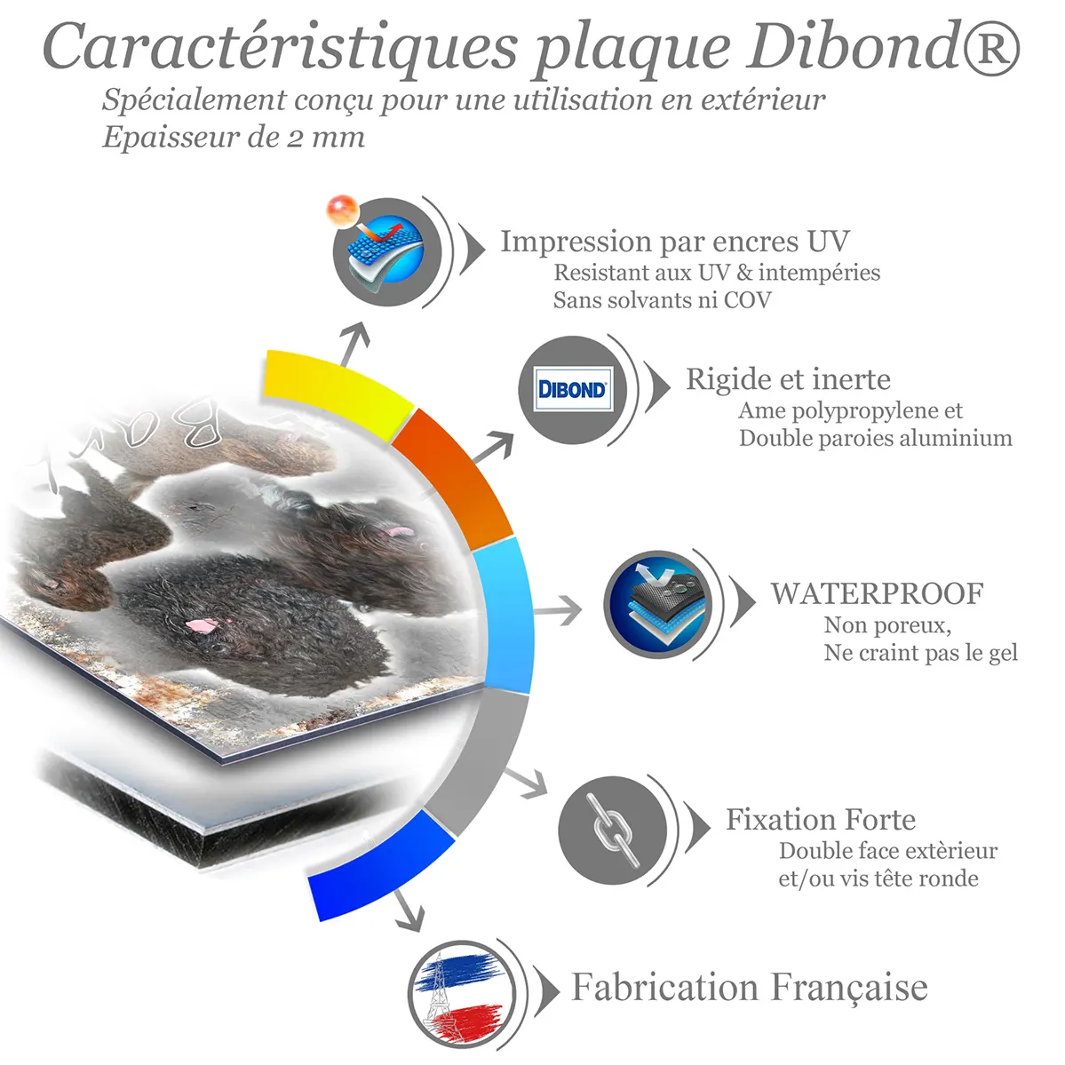 Oui, la plaque est fabriquée en aluminium Dibond de 2 mm et imprimée en UV. Elle ne craint ni la pluie, ni le soleil, ni le gel. Elle peut rester fixée dehors toute l’année sans perdre ses couleurs.